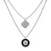 INSPIRADO FLOR DE MICROCIRCONIAS Y DIJE CIRCULAR NEGRO Y FLOR DE CIRCONIA CON CADENA DOBLE CON BAÑO DE RODIO