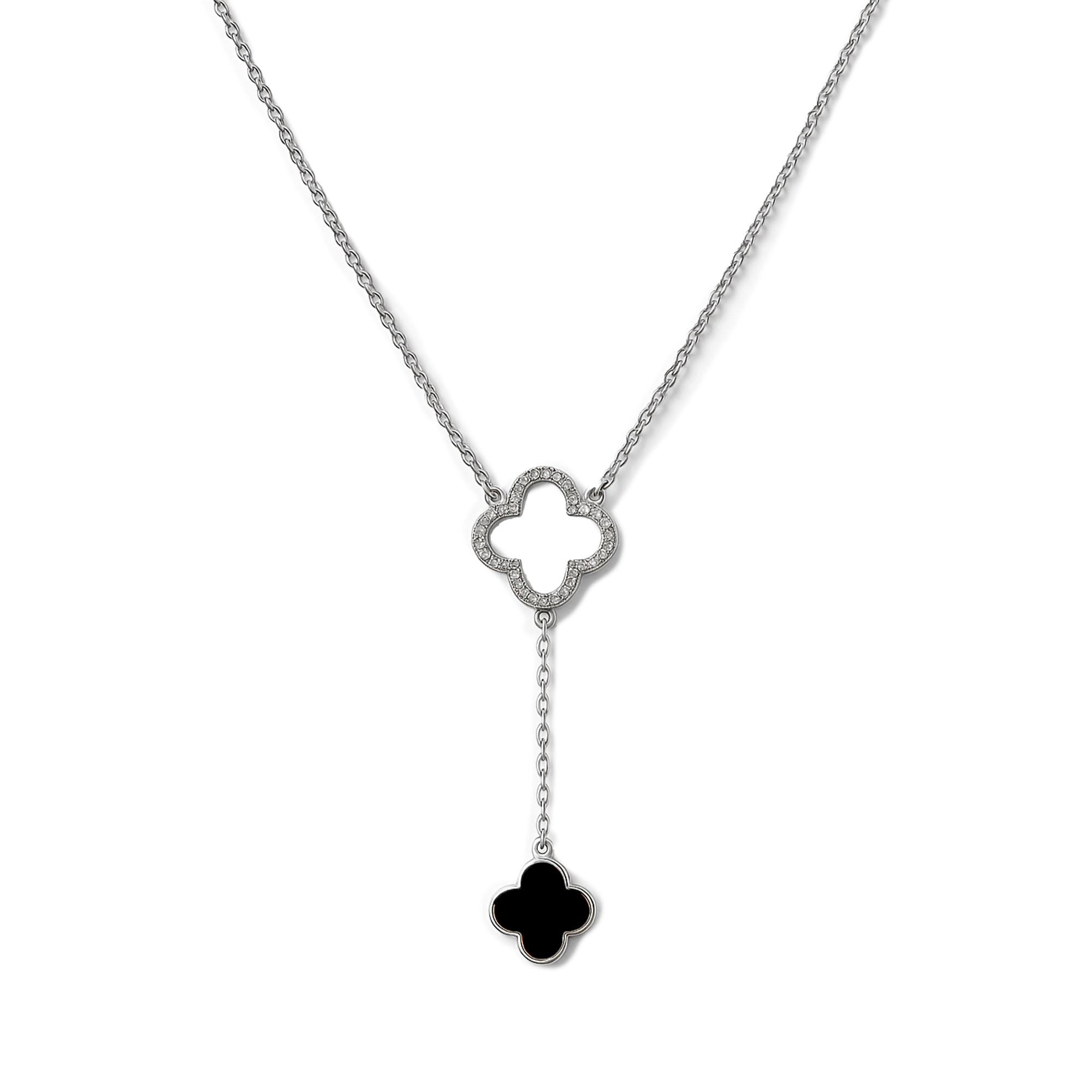Collar Inspirado Corbatero Van C Piedras Naturales con Micro Circonias Plata .925 con Rodio Disponible en: Negro Onix, Agata comprimida y Verde Malaquita