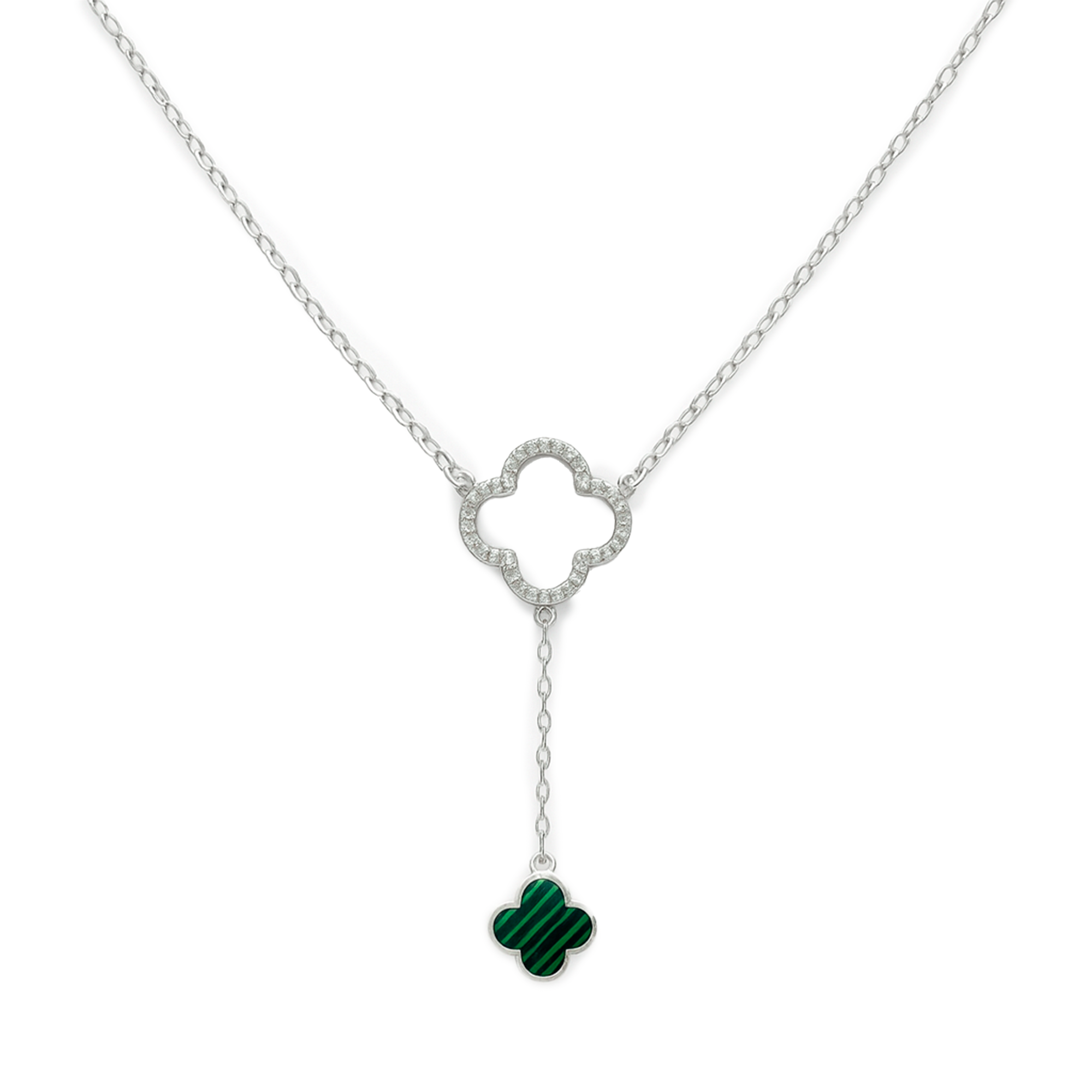 Collar Inspirado Corbatero Van C Piedras Naturales con Micro Circonias Plata .925 con Rodio Disponible en: Negro Onix, Agata comprimida y Verde MalaquitaDescargar Imagen