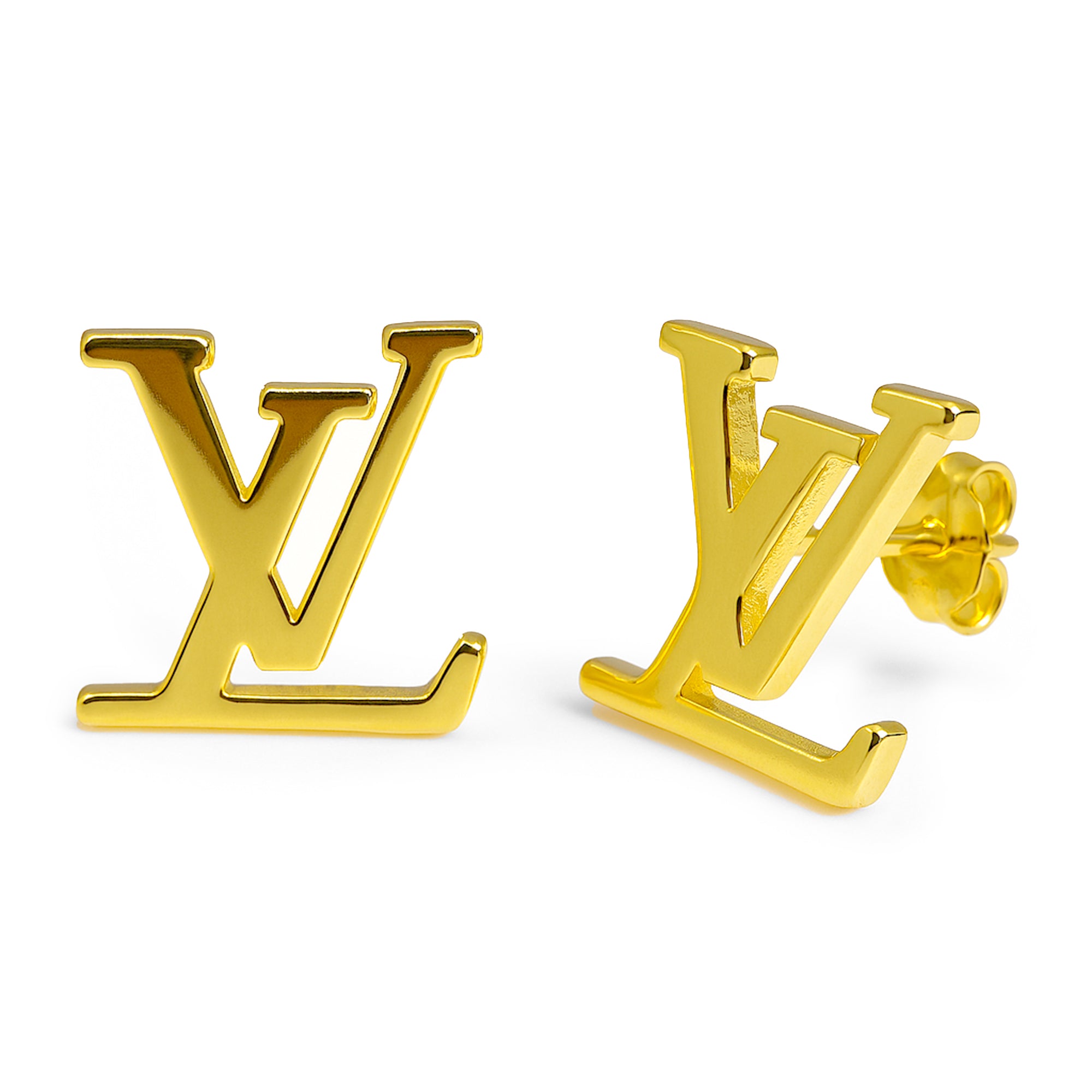 Broquel Maxi Inspirado LV Plata .925 con Baño de Oro