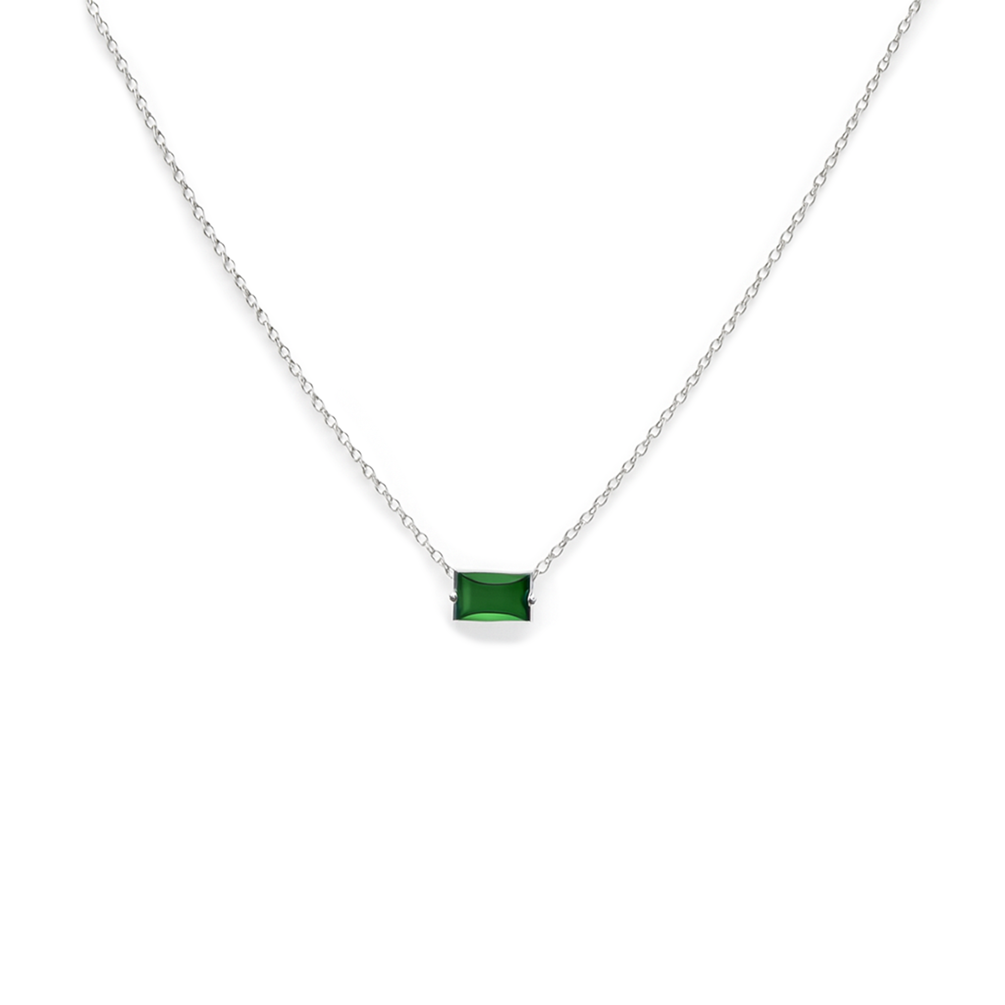 Collar Circonia con Cadena Eslabones Plata .925 con Rodio mas Extensión. Disponible en: Verde y BlancaDescargar Imagen