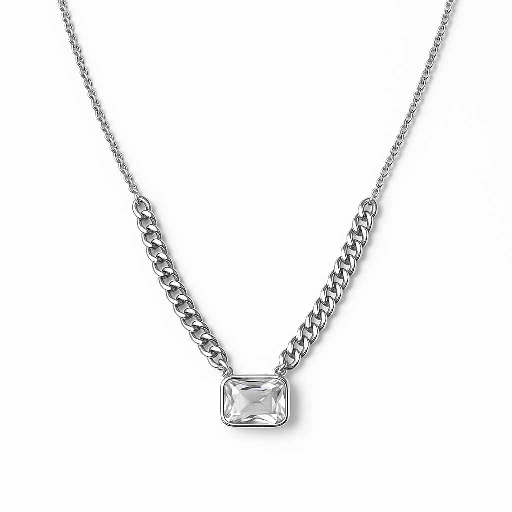 Collar Circonia Maxi con Cadena Cubana Plata .925