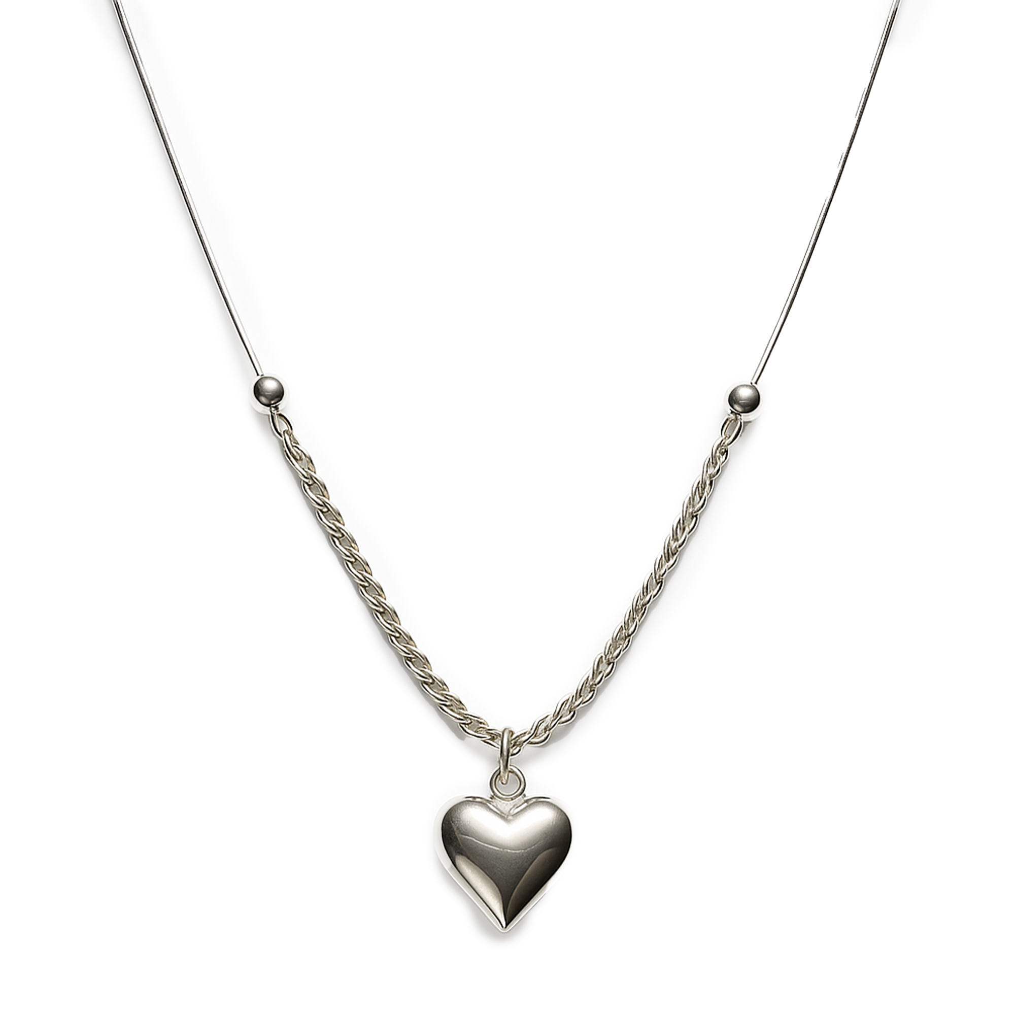 Collar Corazon Bombeado con Cadena Torzal y Cola de Rata Plata .925