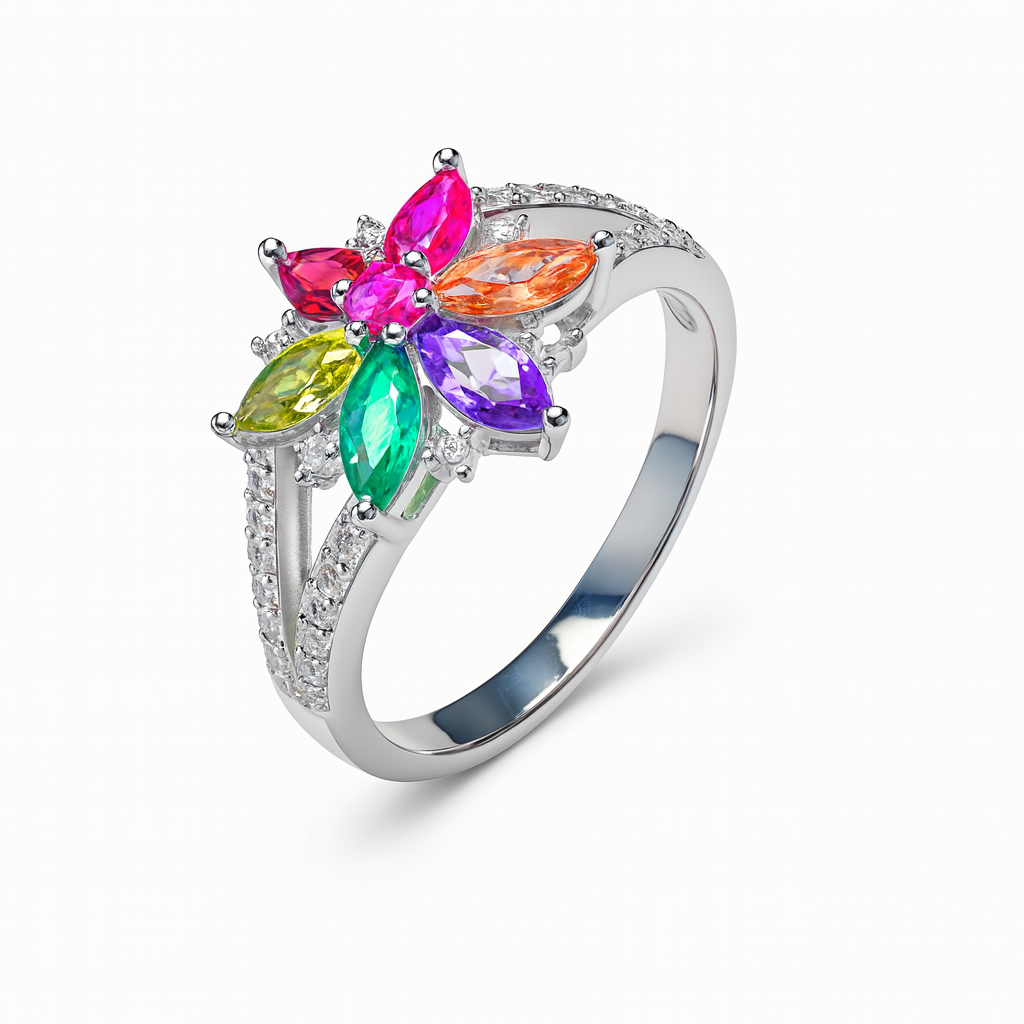 Anillo Flor con Circonias y Micro Circonias Plata .925 con Rodio