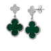 Arete Flor Mediano Inspirado Van C Diamantado con Piedras Naturales Plata .925 con Rodio, disponible en Madre Perla blanca, Ónix negro, Malaquita Verde, Cornalina y ojo de TIgre