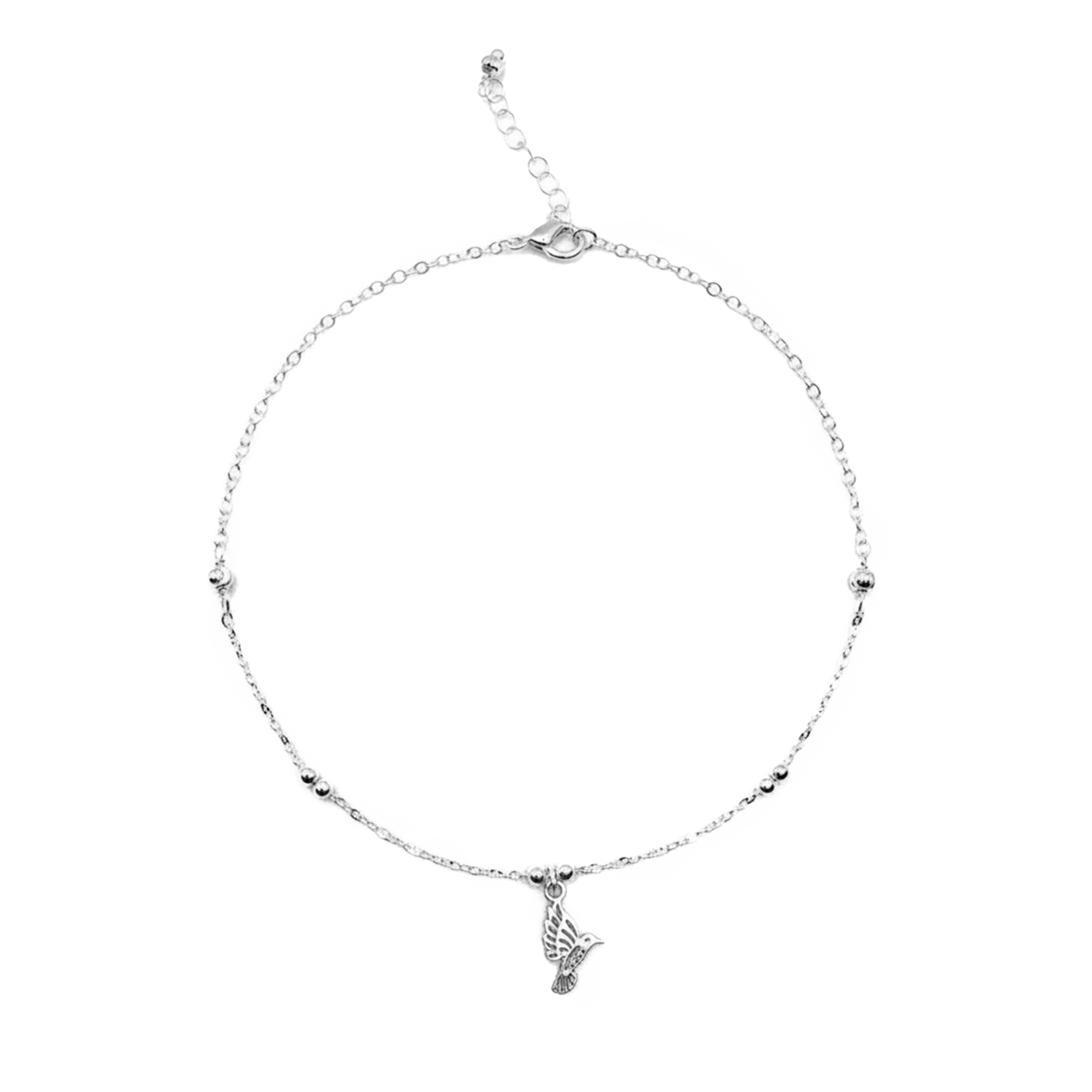 Tobillera Dije de Colibri Calado con Cadena Eslabones Plata .925 mas extensión