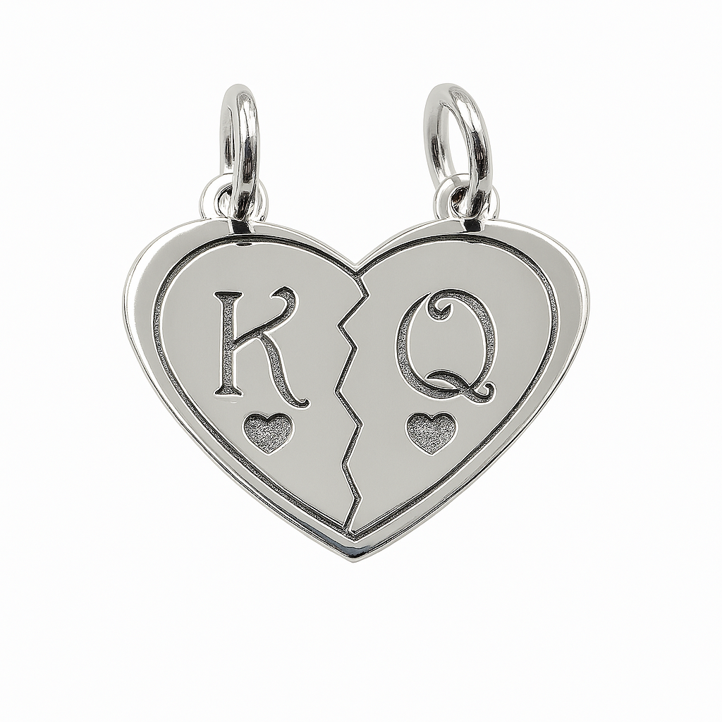 Dije Duo Corazón Partido con Iniciales K & Q Plata .925