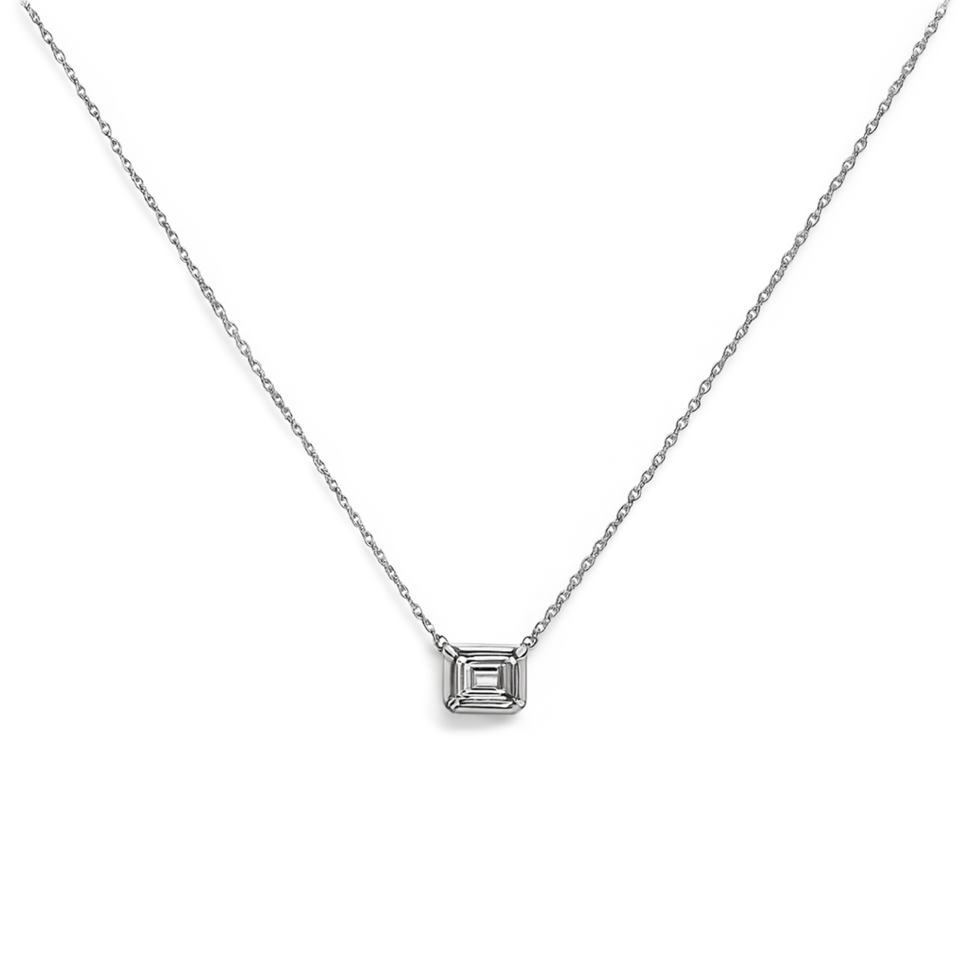 Collar Circonia Biselada con Cadena Eslabones Plata .925 con Rodio