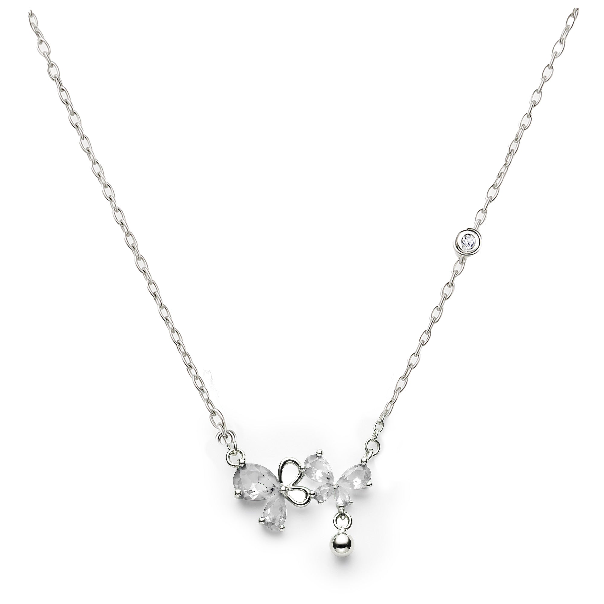 Collar Mariposas con Circonias con Bolita Lisa Plata .925 con Rodio