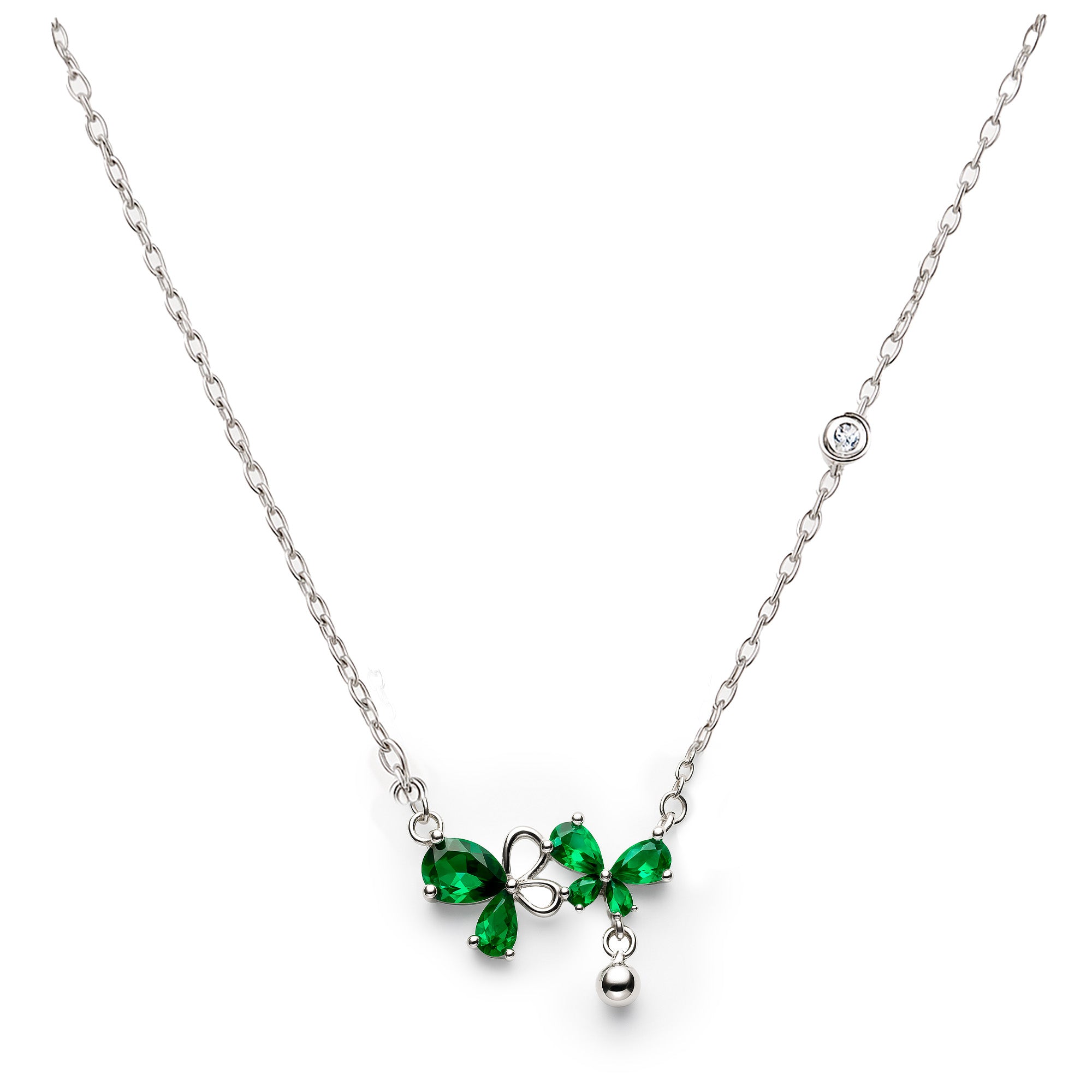 Collar Mariposas con Circonias con Bolita Lisa Plata .925 con Rodio Mas Extensión Disponible en: Blanco, Verde, Rosa, Azul MarinoDescargar Imagen
