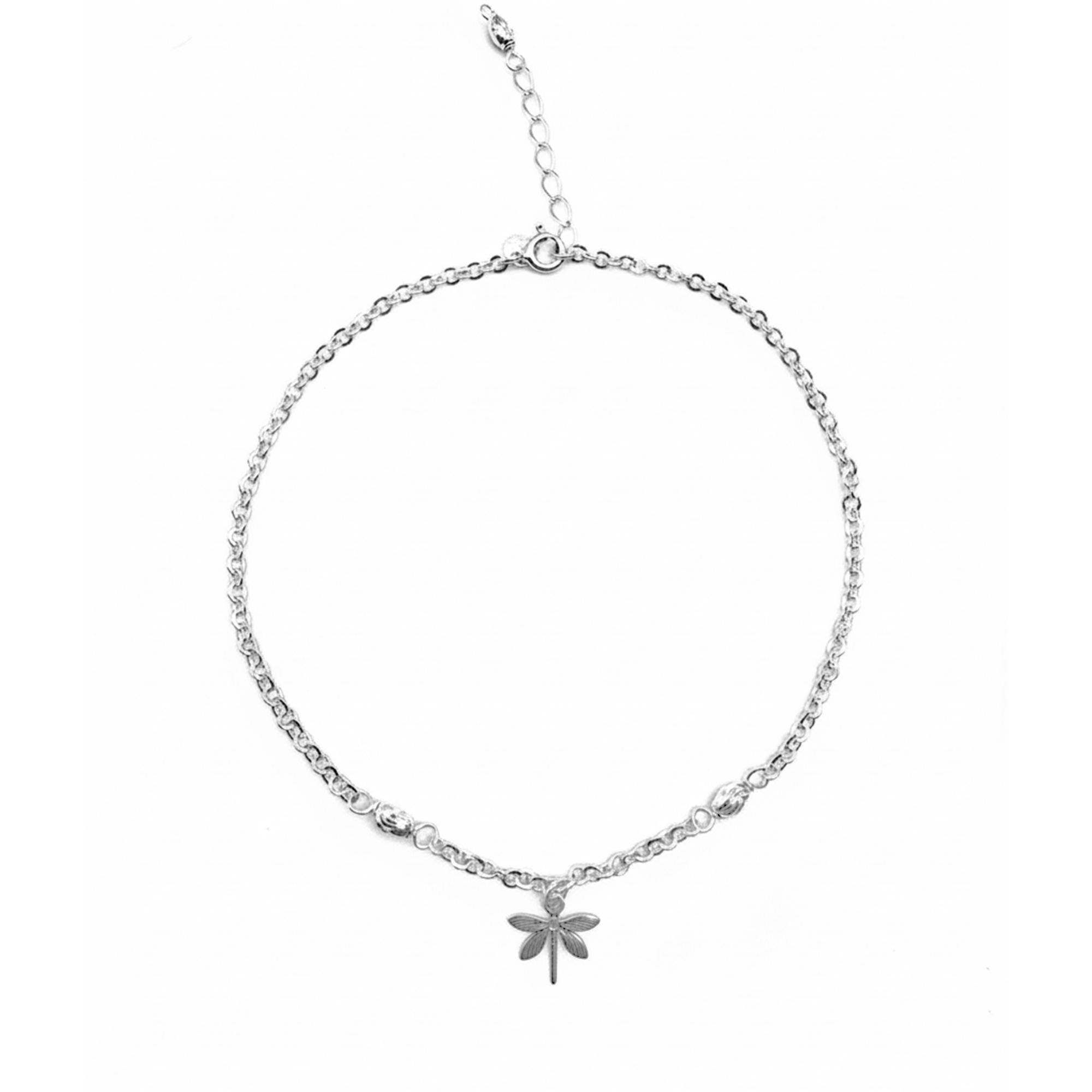 Tobillera Dije Libelula con Cadena Eslabones Plata .925 con dos bolitas diamantadas extensión