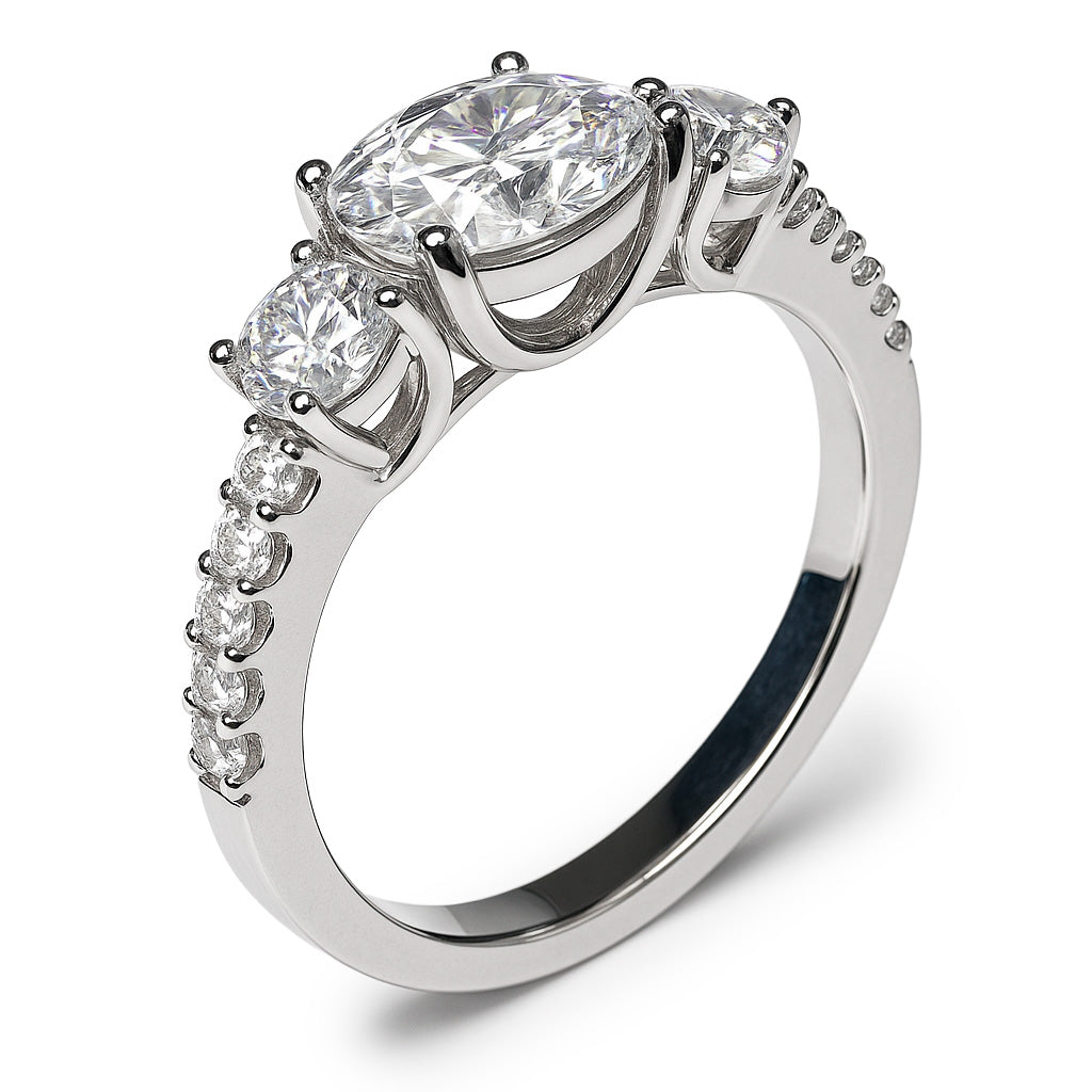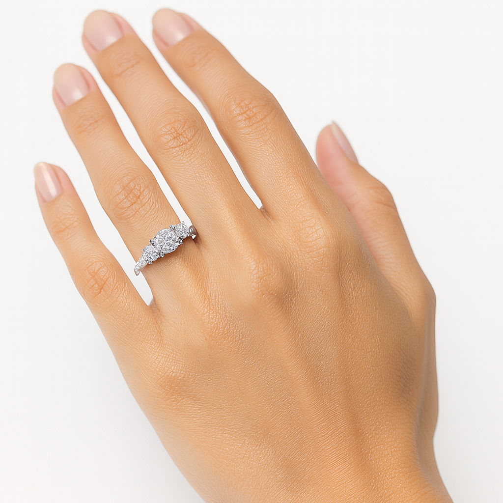 Anillo Tres Circonias y Micro Circonias Plata .925 con Rodio
