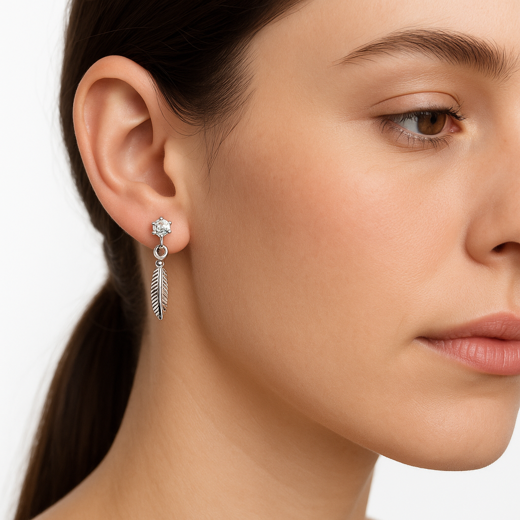 Broquel Pluma Colgante con Circonia Plata .925 (con bolita atrás)