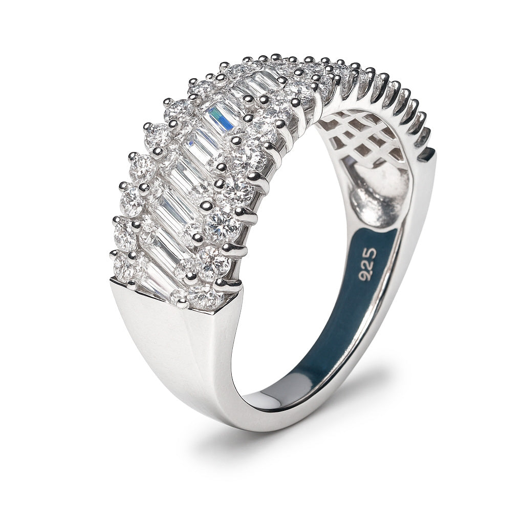Anillo Ancho Media Churumbela con Circonias Baguette Plata .925 con Rodio
