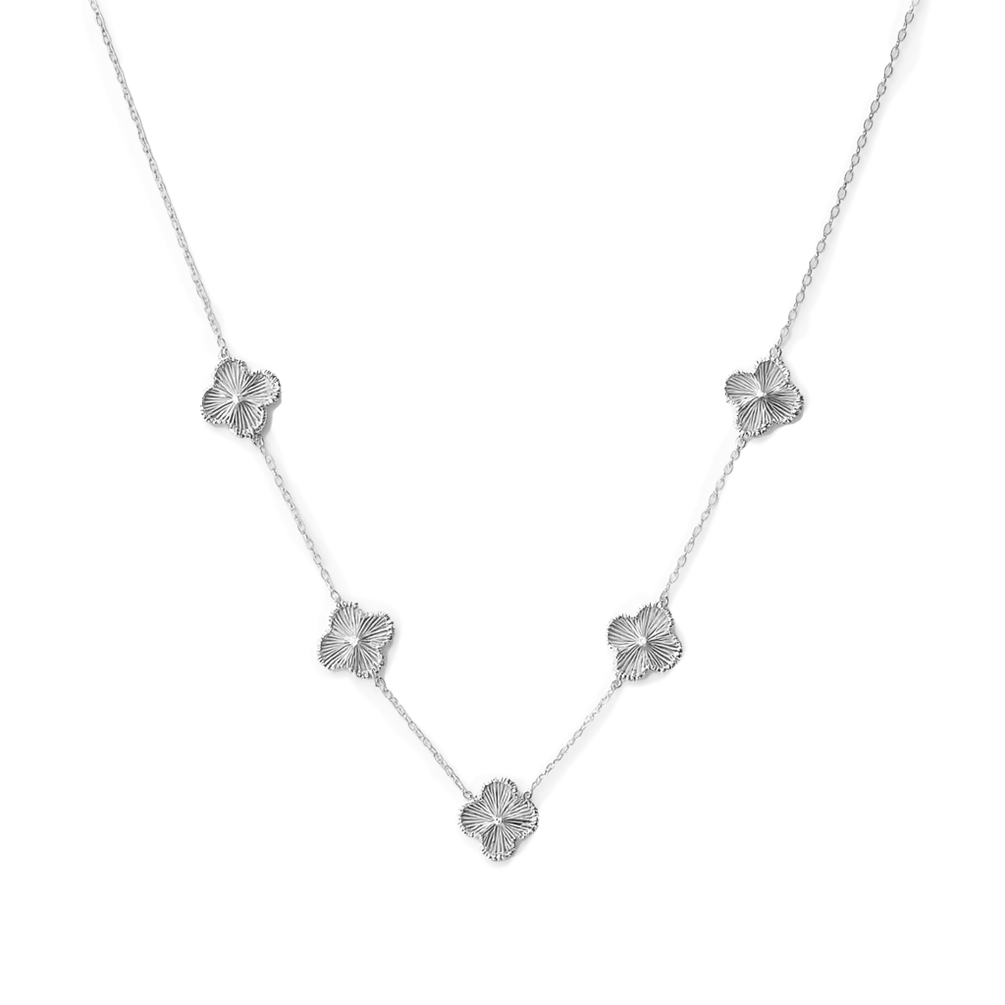 Collar 5 Flores Inspirado Van C Diamantado Plata .925 con Rodio mas Extensión