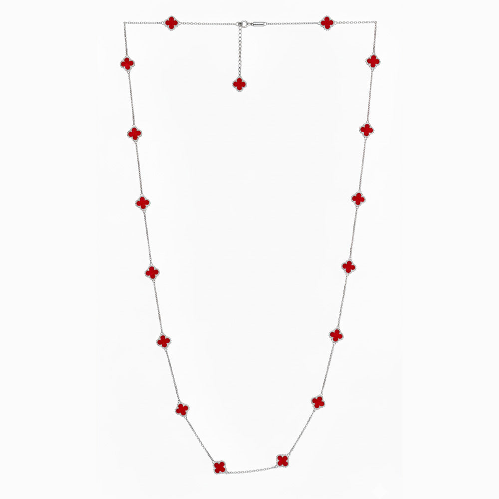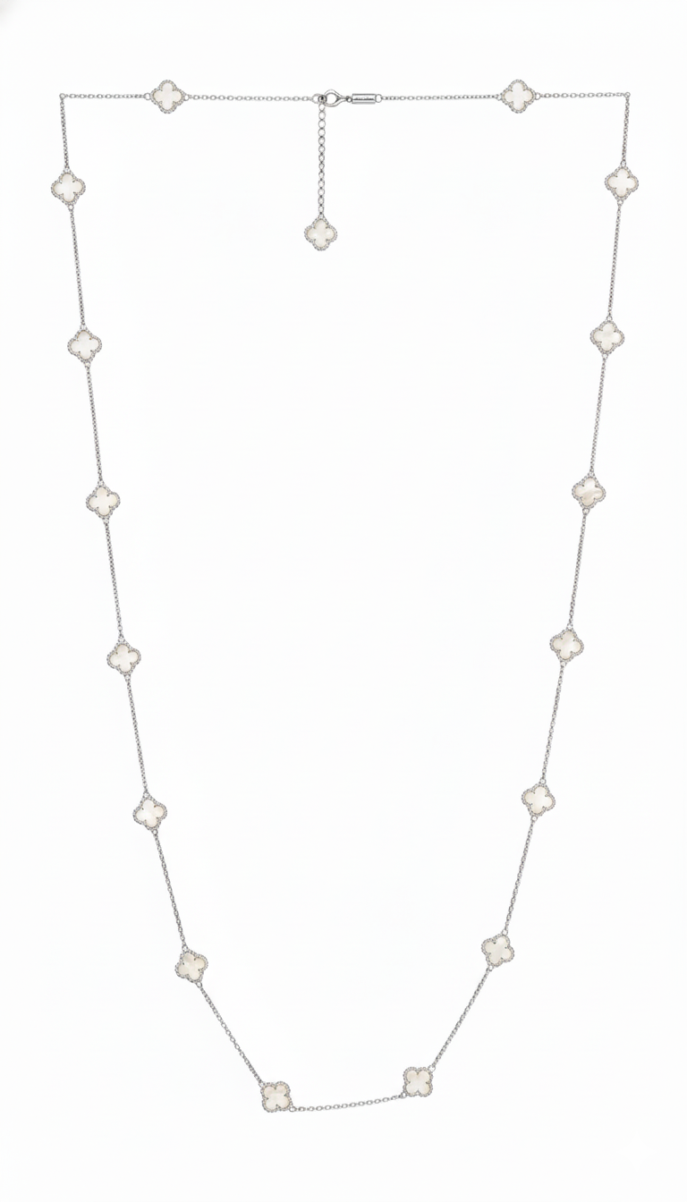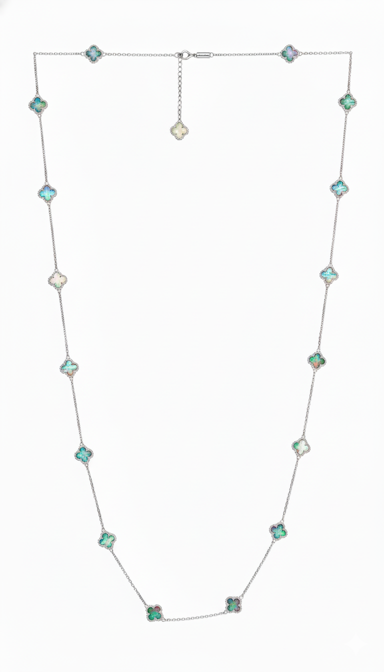Collar Flores Inspirado Van C Largo Piedras Naturales Plata .925 con Rodio