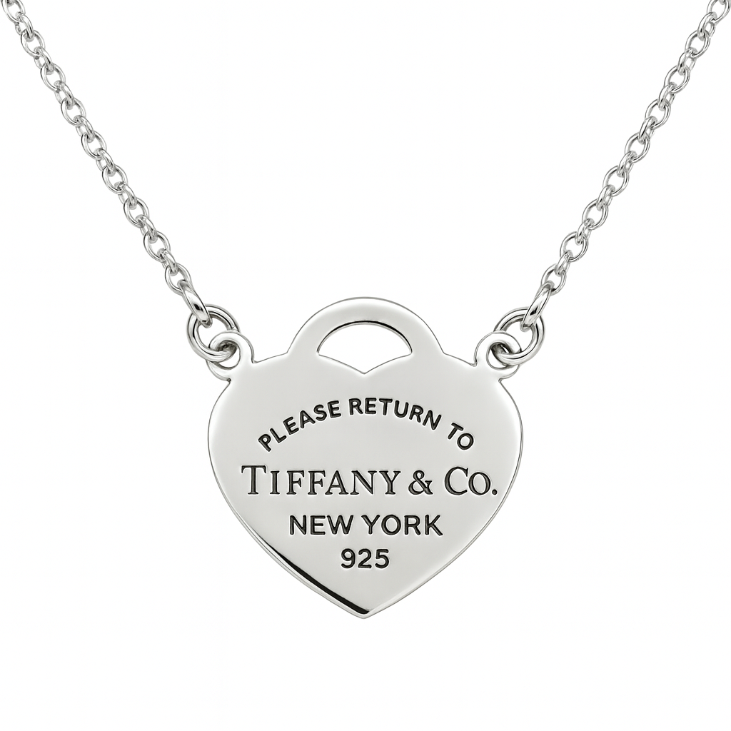 Collar Inspirado Tiff Grabado con Cadena Eslabones Plata .925