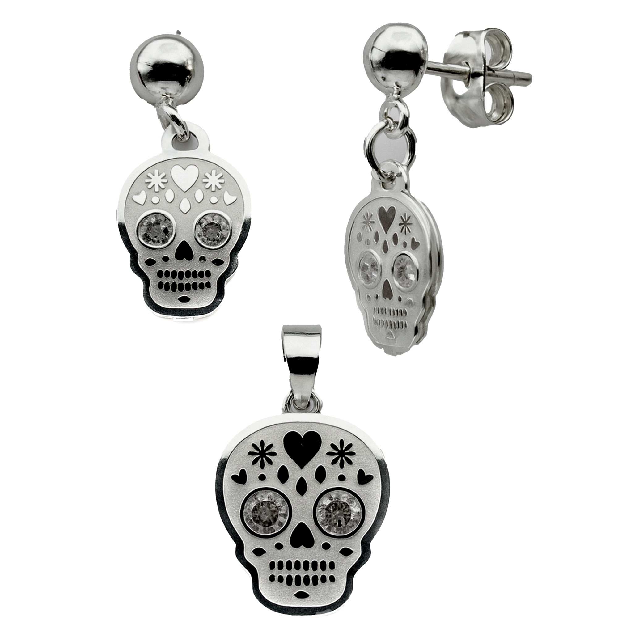 Juego Arete, Dije Catrinas Bombeado con Circonia Plata .925
