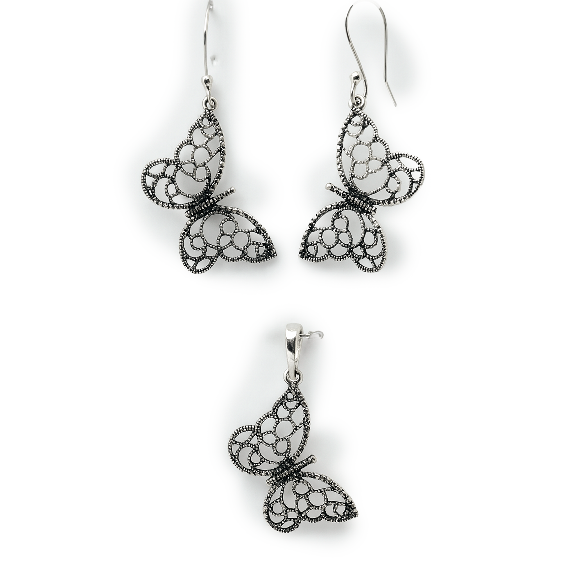 Juego Arete Dije Mariposa Grande Marquesita Plata .925
