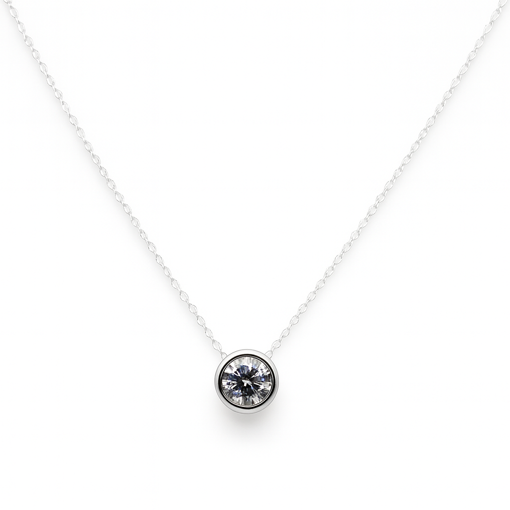 Collar Circonia de 1cm con Cadena Eslabones Plata .925 mas Extensión