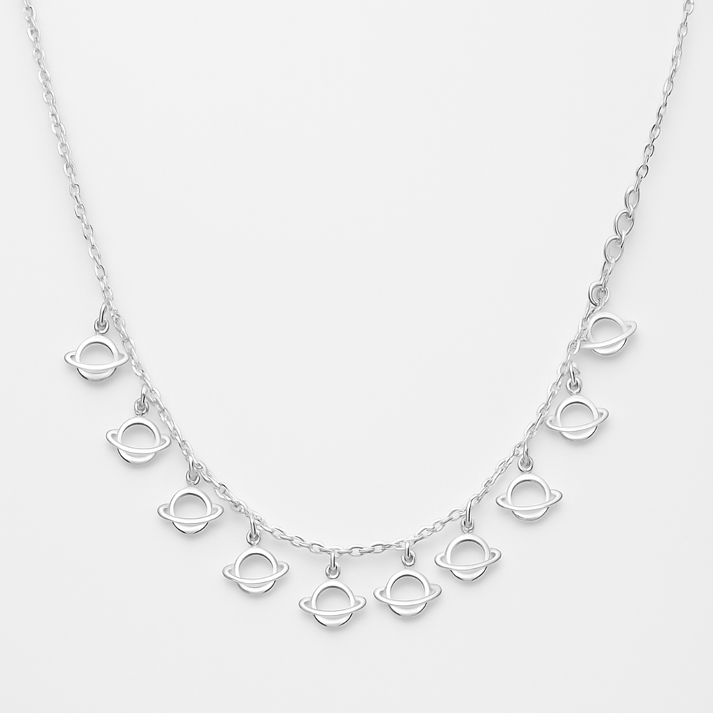Collar Saturno Lisos Colgantes con Cadena Eslabones Plata .925
