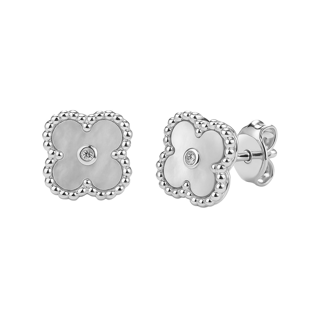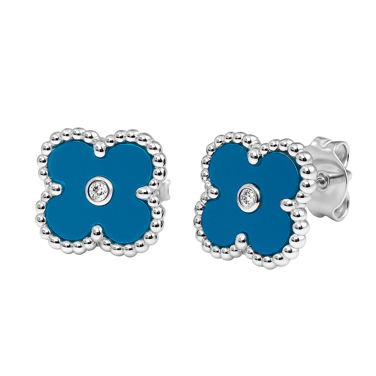 Broquel Flor Mediana Inspirado Van C con Piedra y Circonia en Medio Plata .925