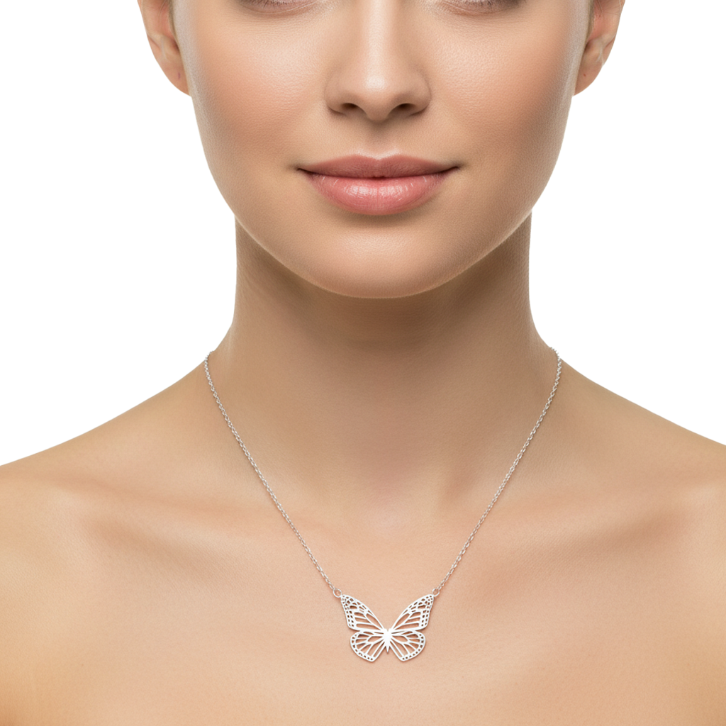 Collar Mariposa Calado con Cadena Eslabones Plata .925