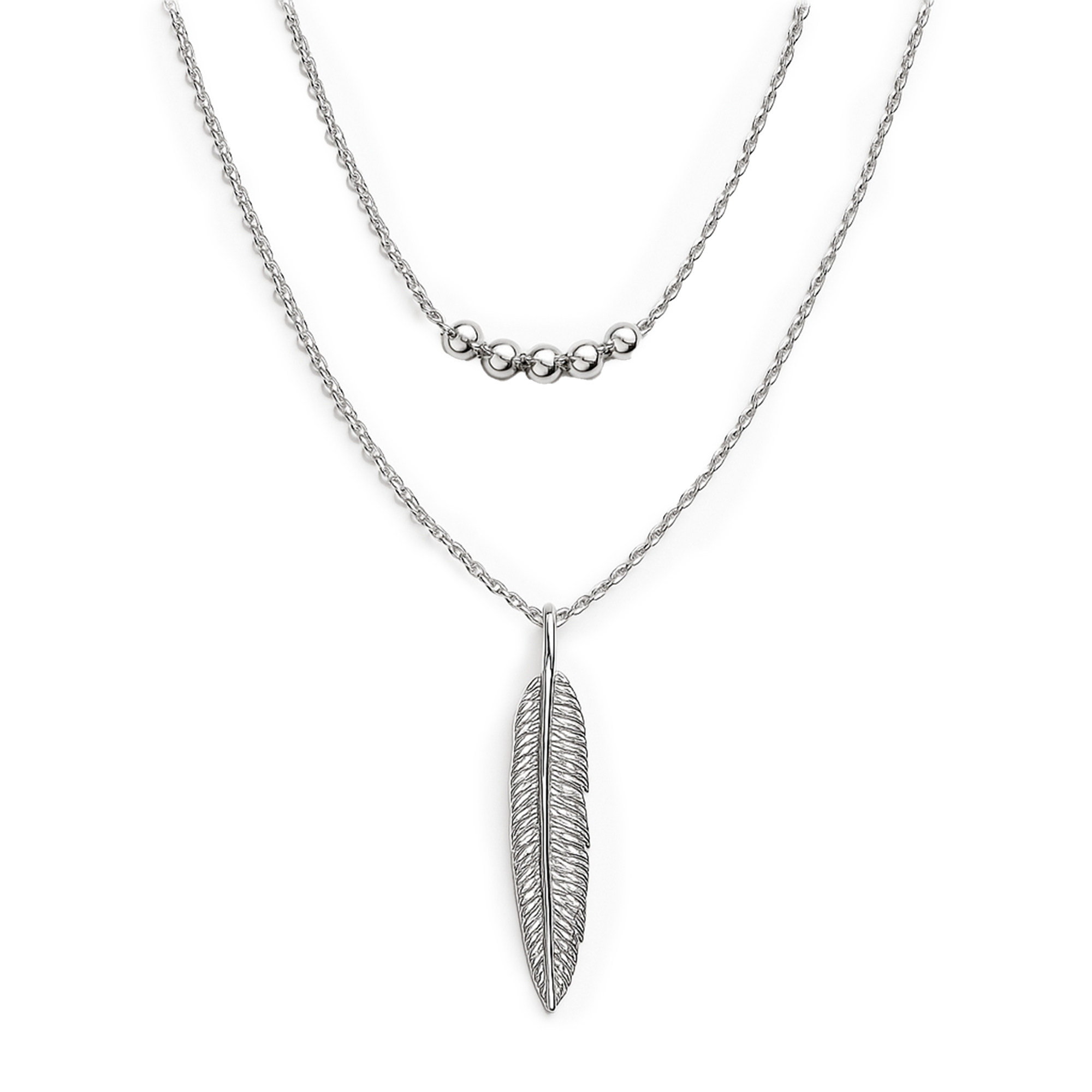 Collar Doble con Dije de Pluma con Bolita Diamantada Plata .925