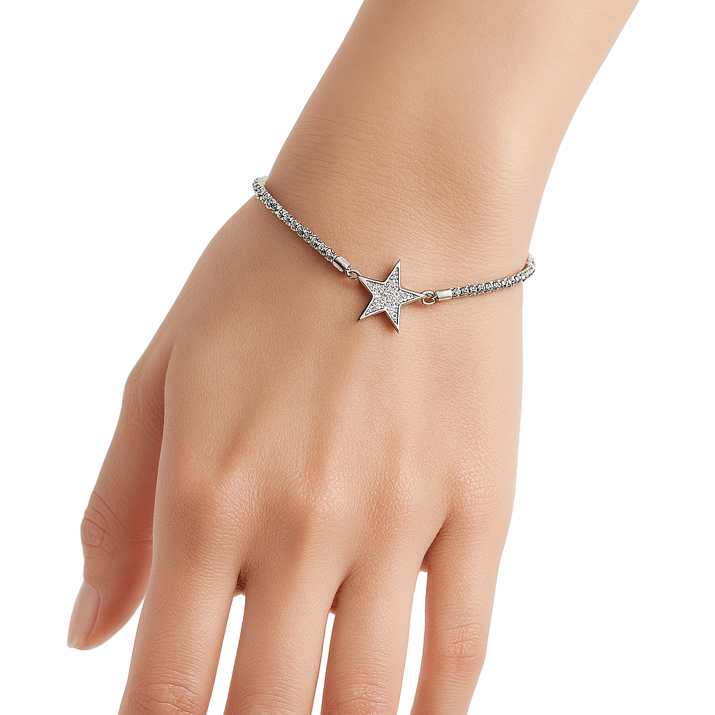Pulsera Estrella con Micro Circonias y Cadena Espuma Plata .925 con Rodio