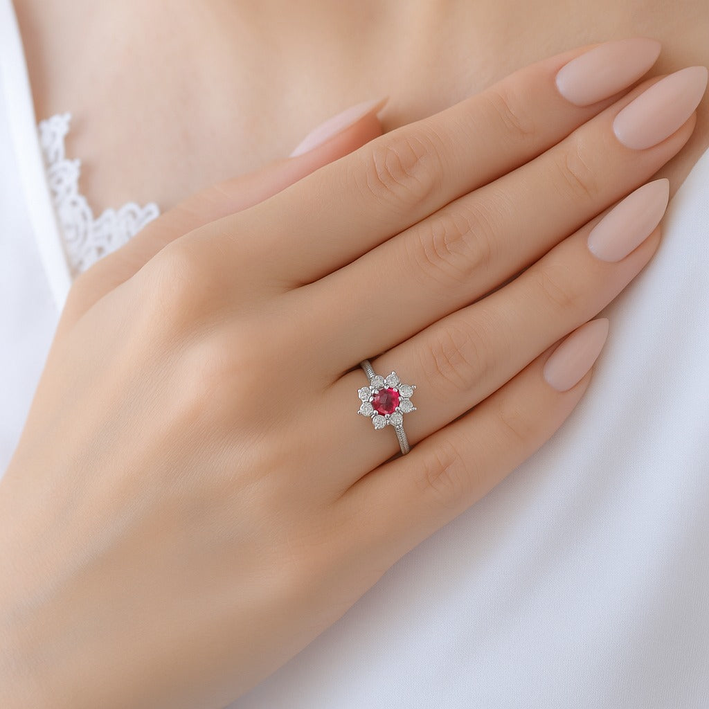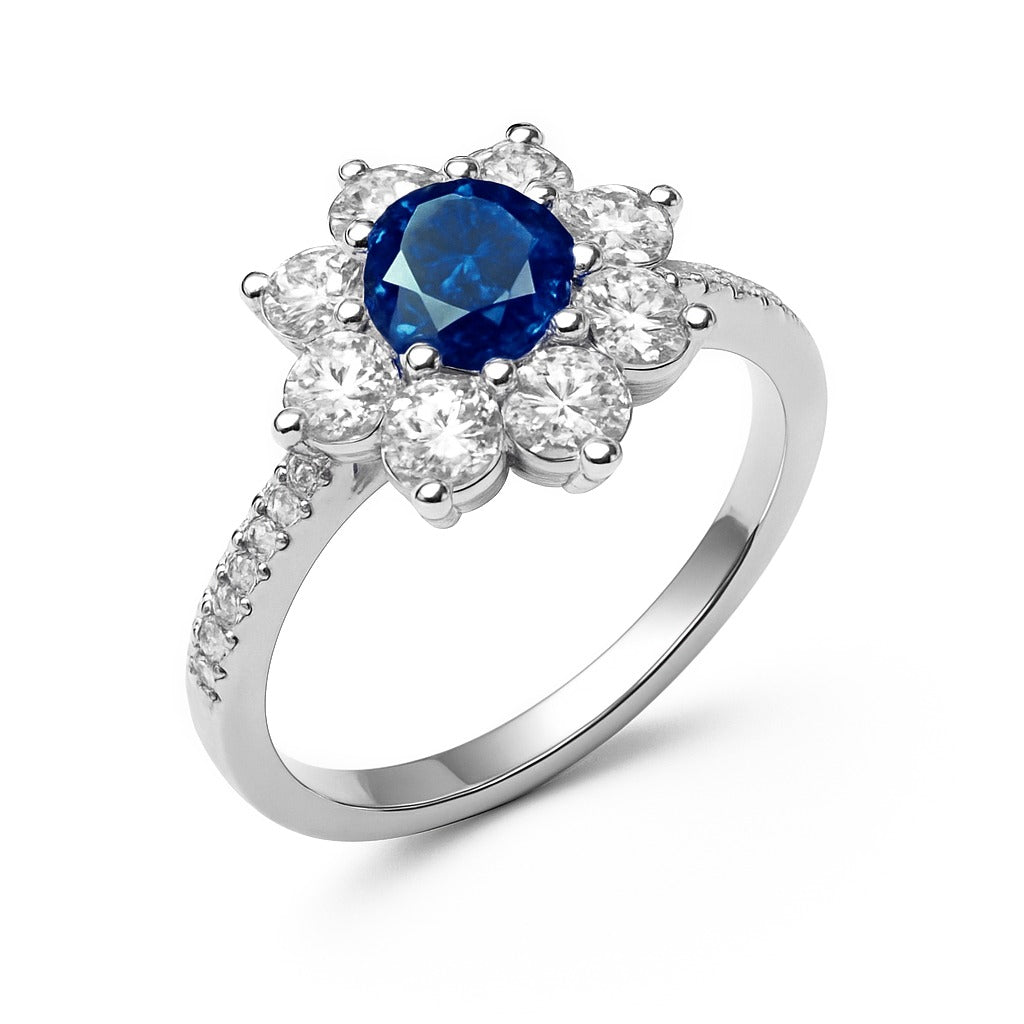 | Anillo Flores circonia grande blanco y circonias blancas rodio plata .925 |