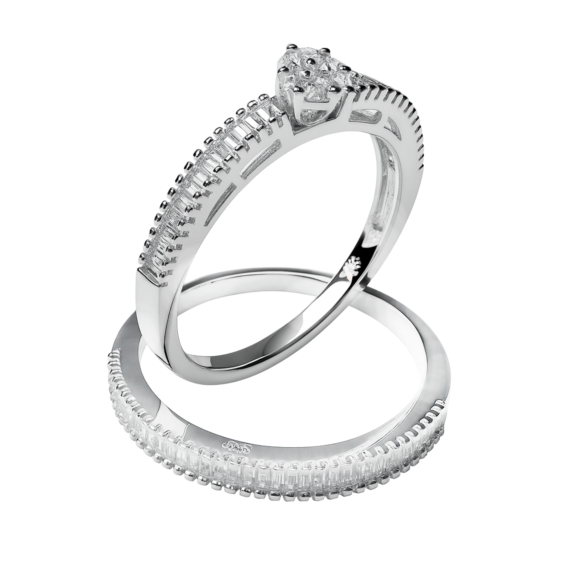 Anillos Alianza con Micro Circonias y Circonias Baguette Plata .925 con Rodio