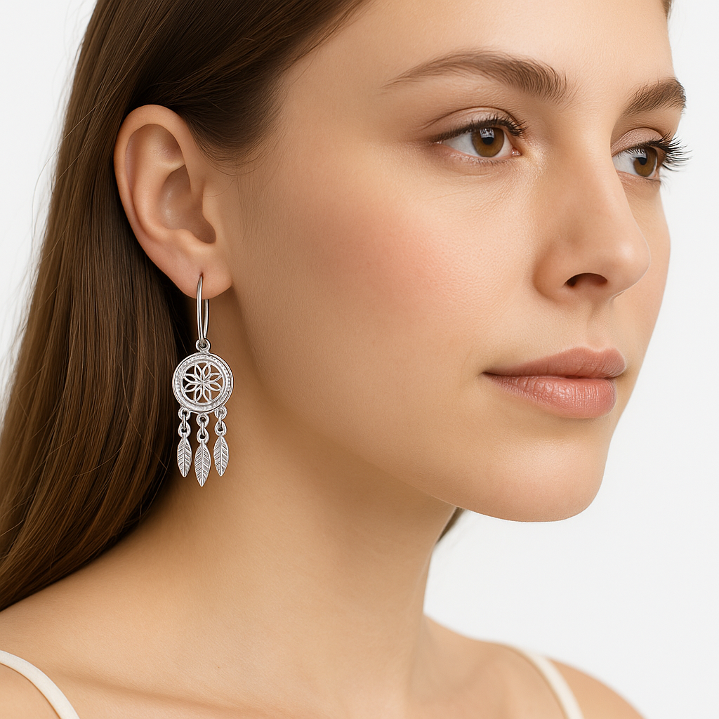 Arete Mediano Atrapa Sueños con Circonias Plata .925