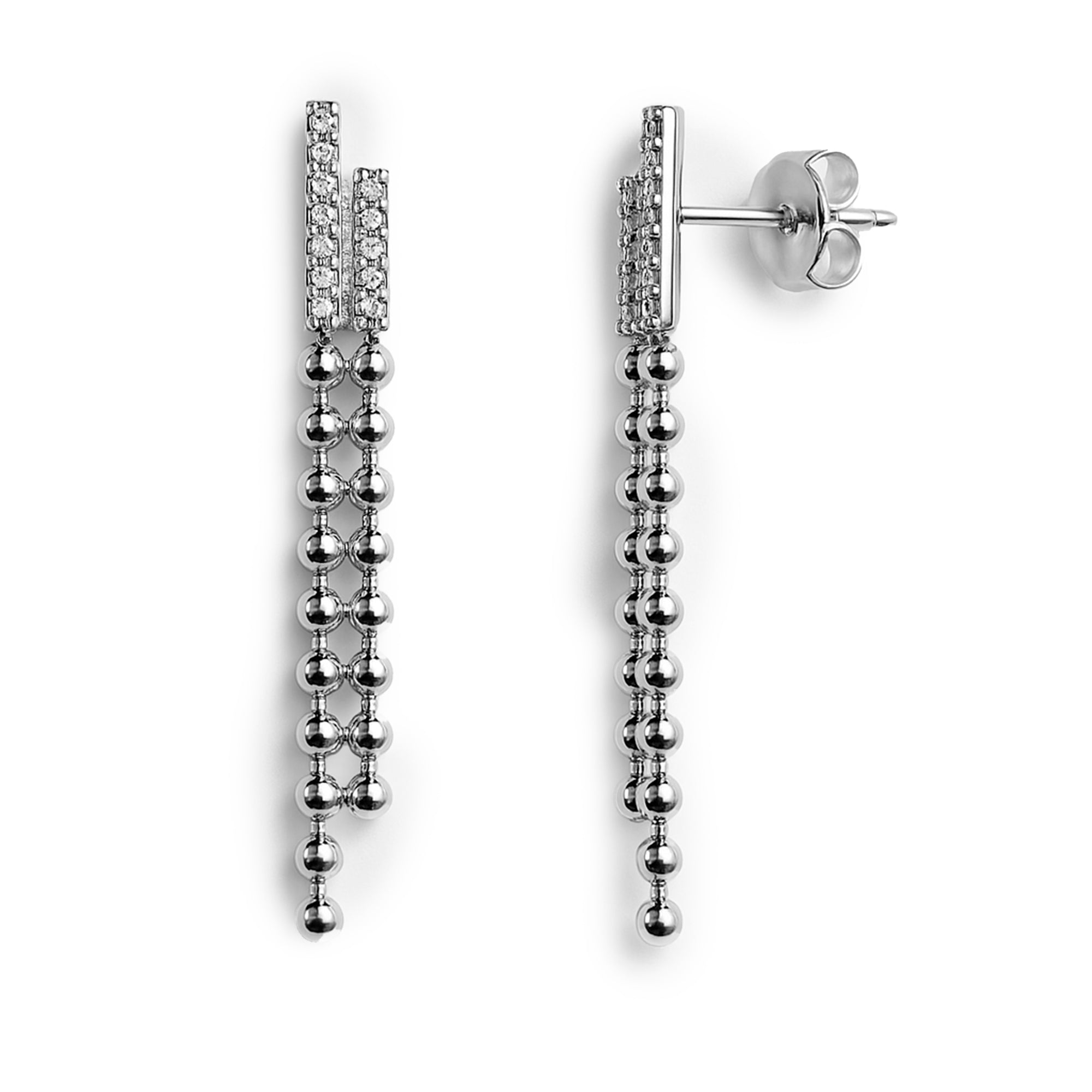 Arete Largo Bolitas con Circonia Plata .925