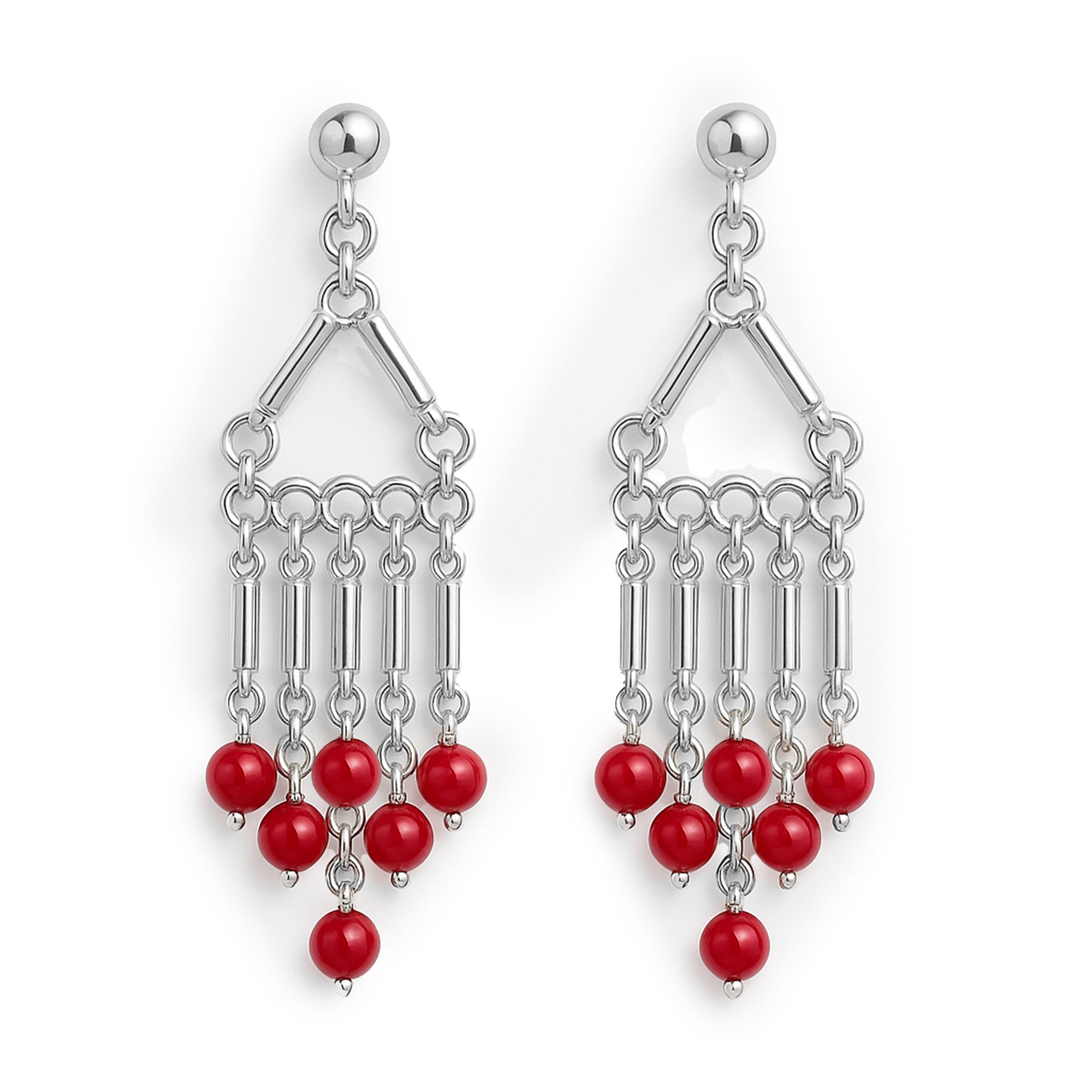 Arete Largo Estilo Candelabro con Piedras Naturales Hecho a Mano Plata .925