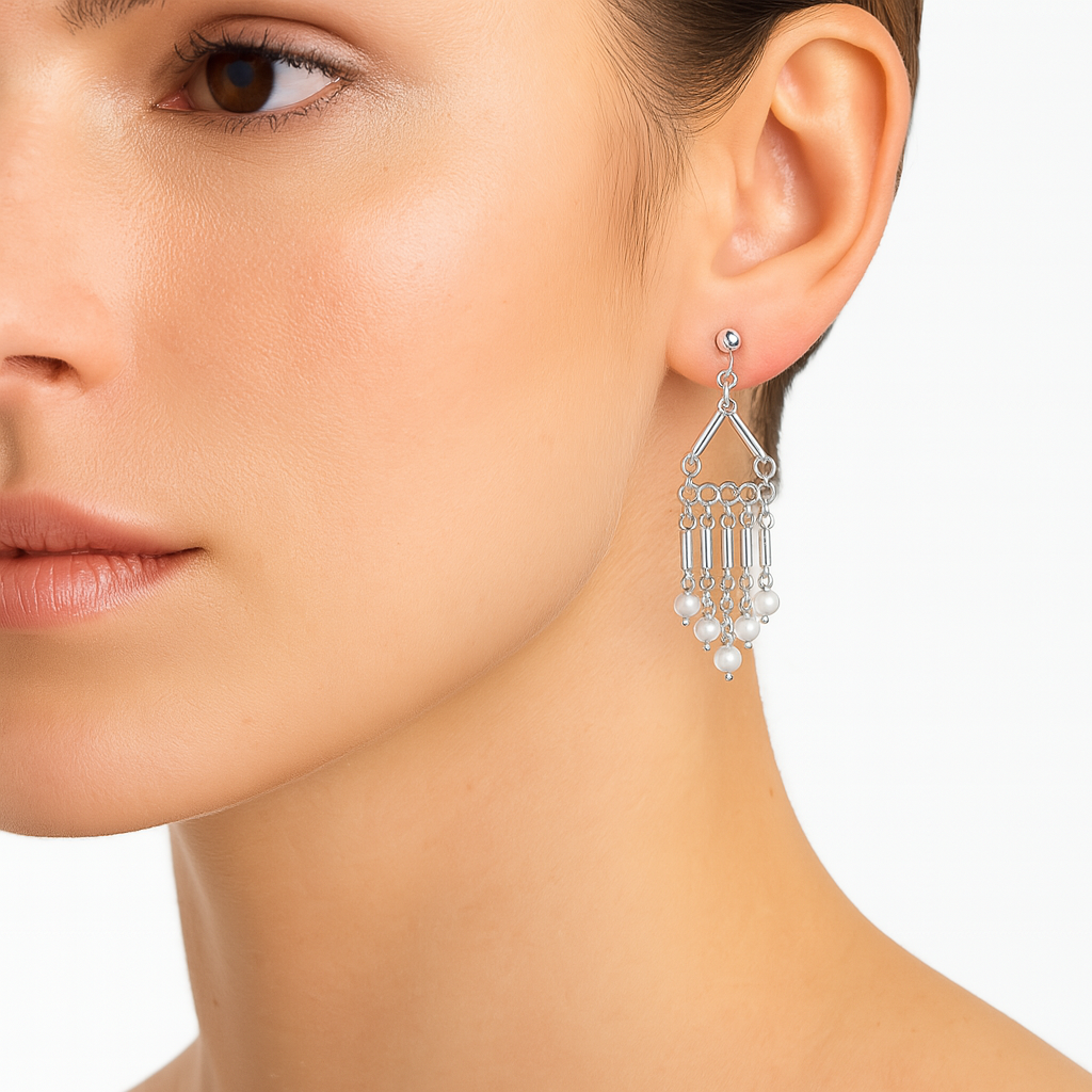Arete Largo Estilo Candelabro con Piedras Naturales Hecho a Mano Plata .925, disponibles en Madre Perla Blanco, ónix Negro y Ágata ComprimidaDescargar Imagen