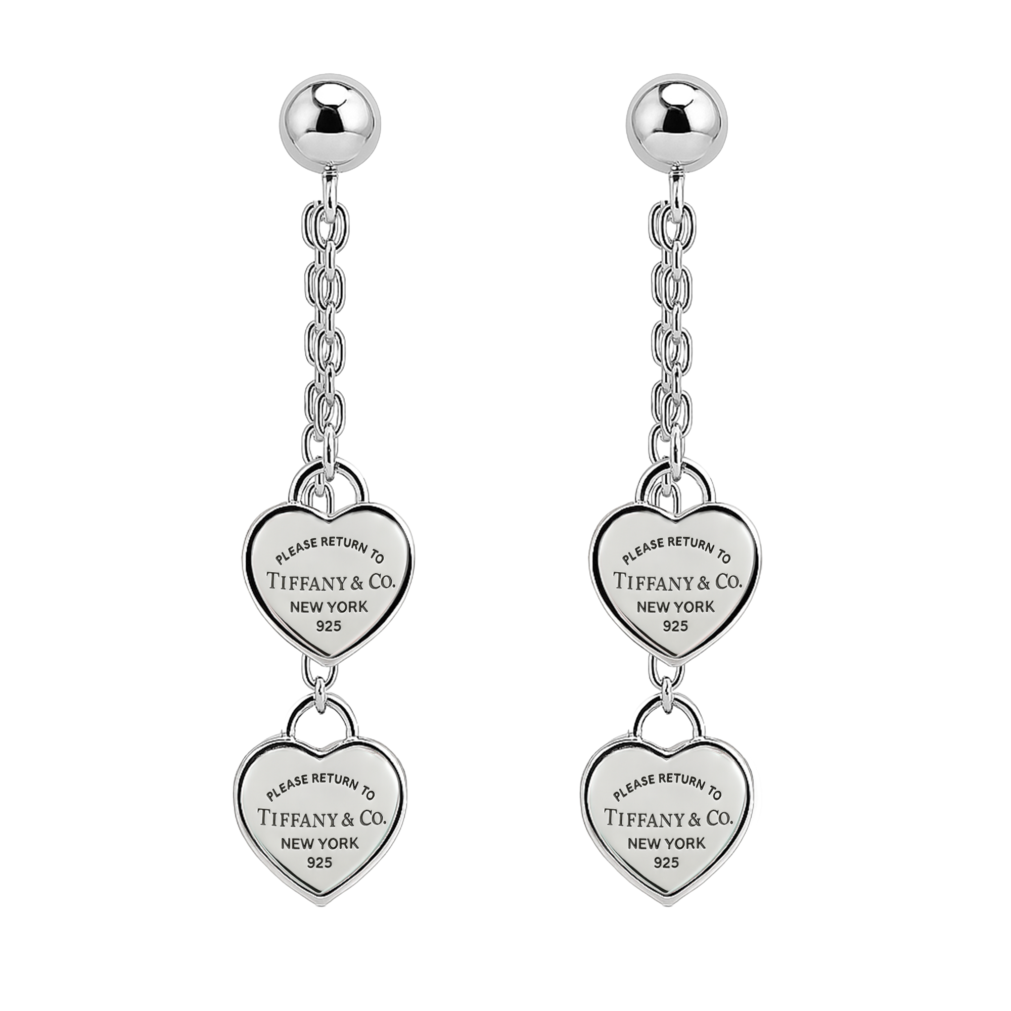 Arete Largo Inspirado Tiff Corazones Esmaltados, parte de atrás con logotipos Plata .925 con Rodio