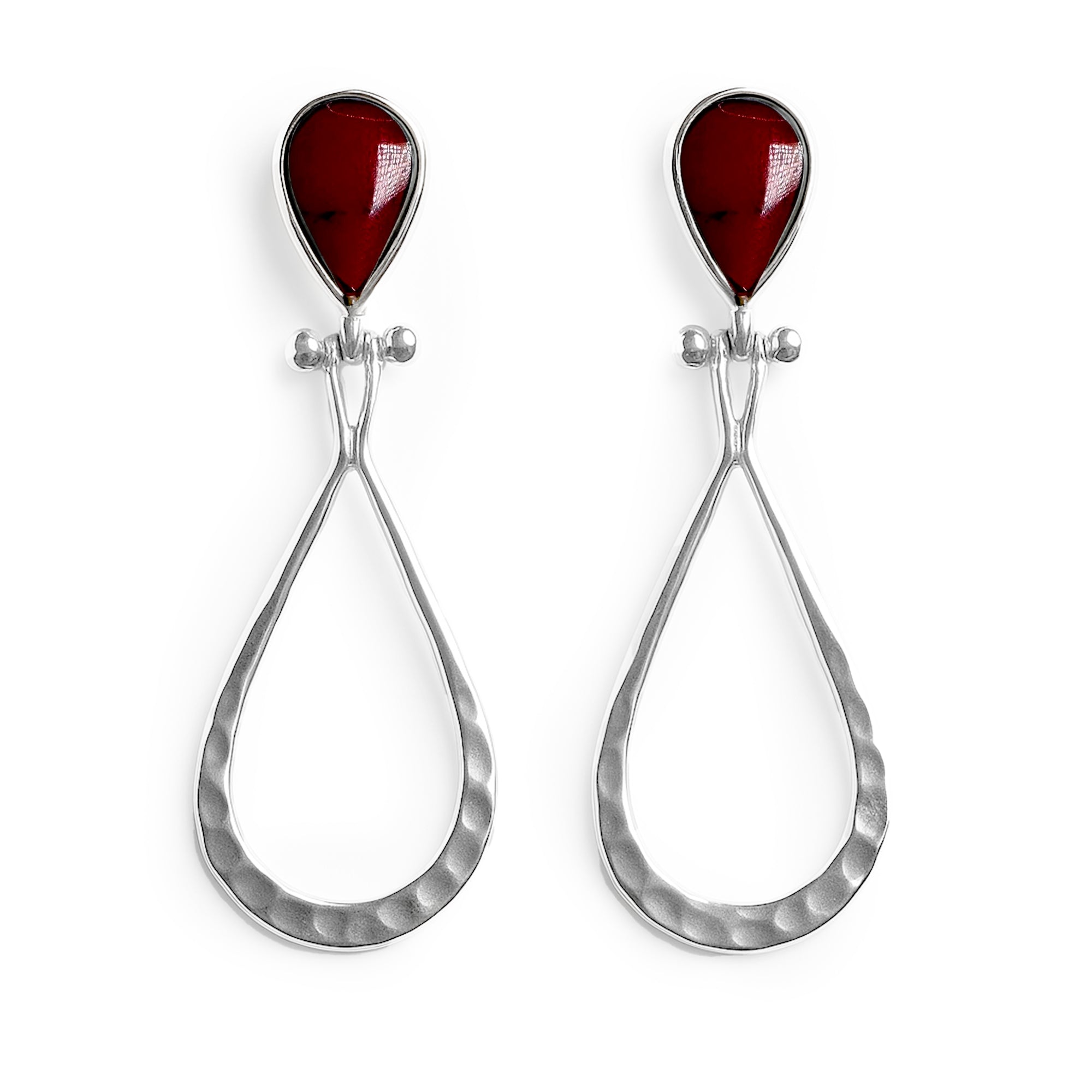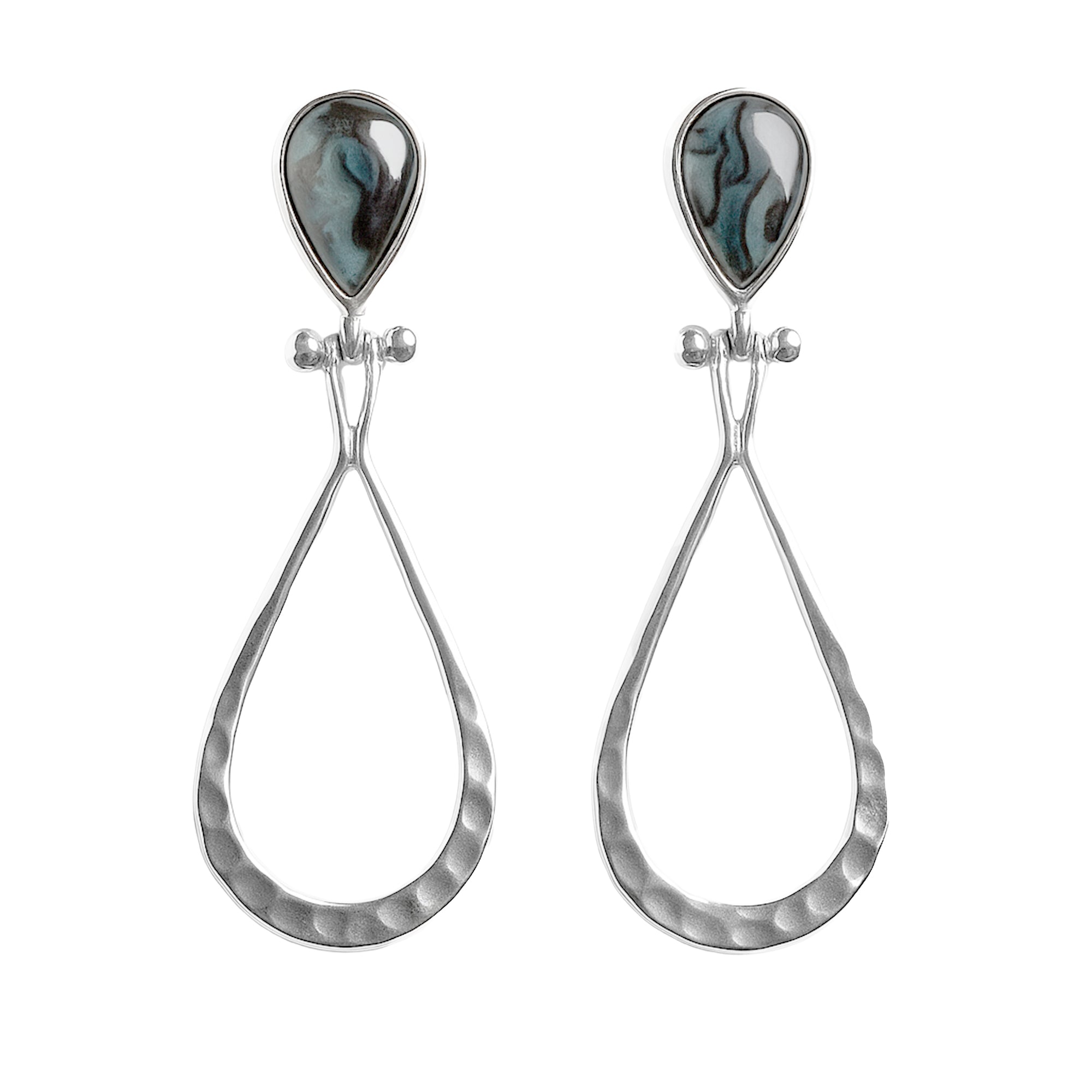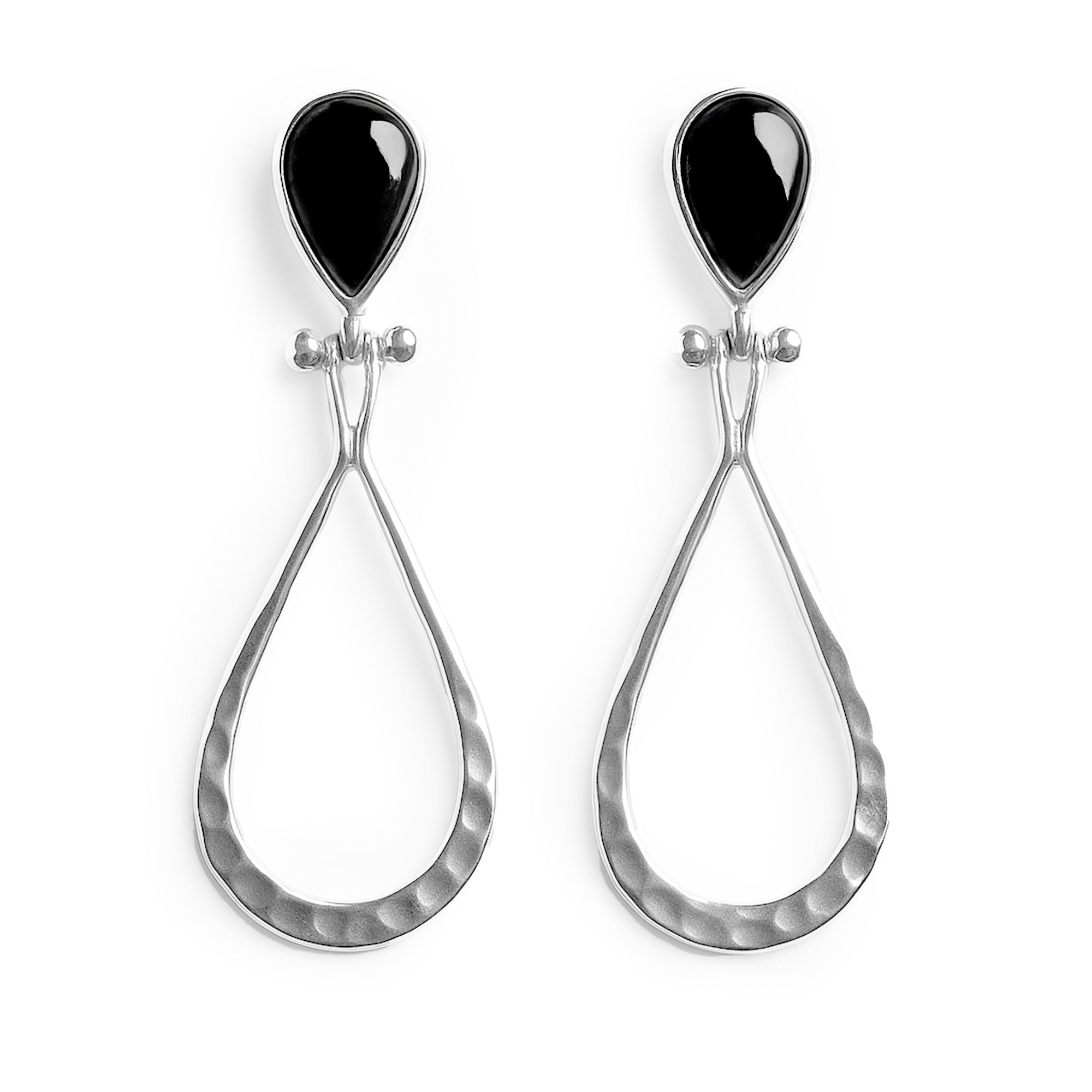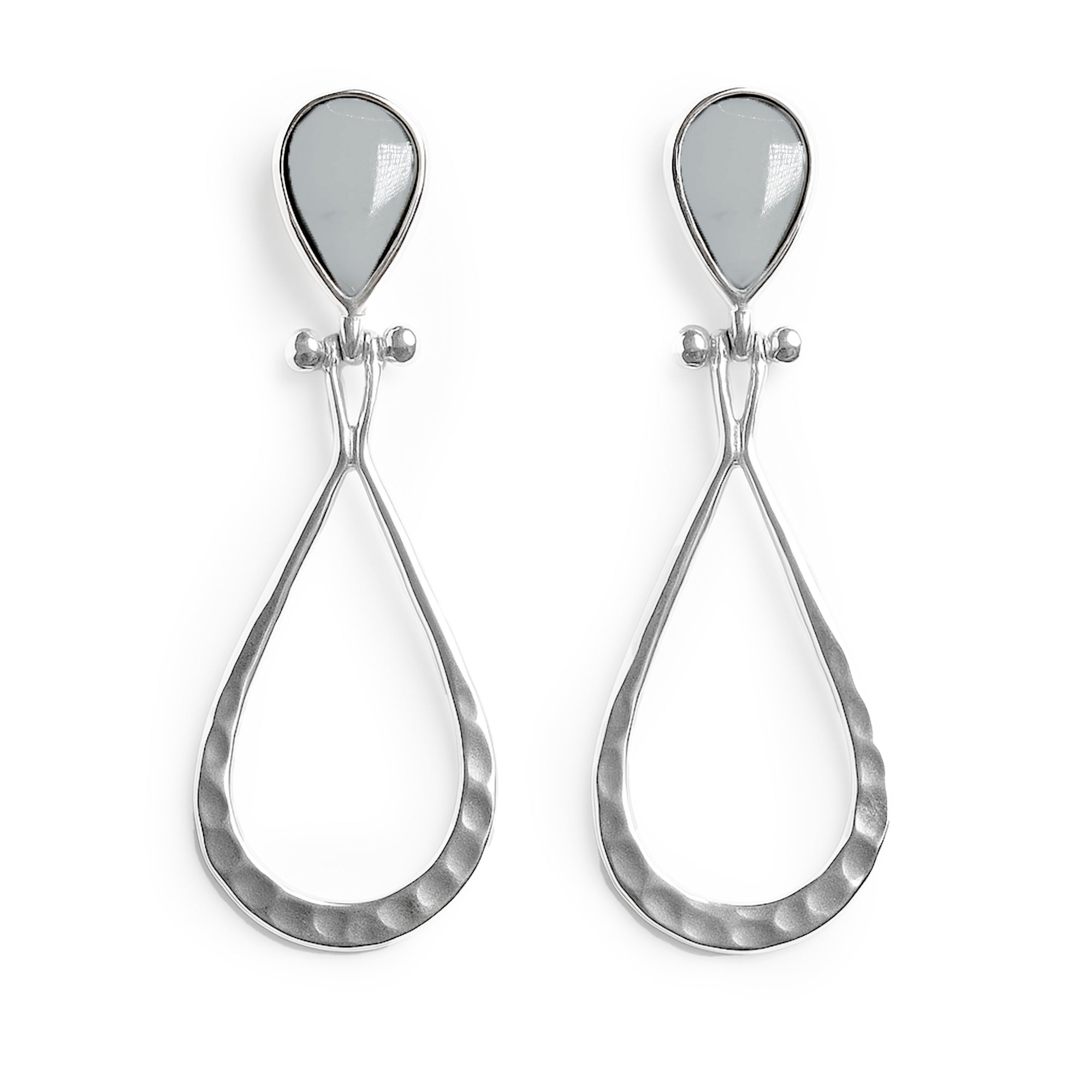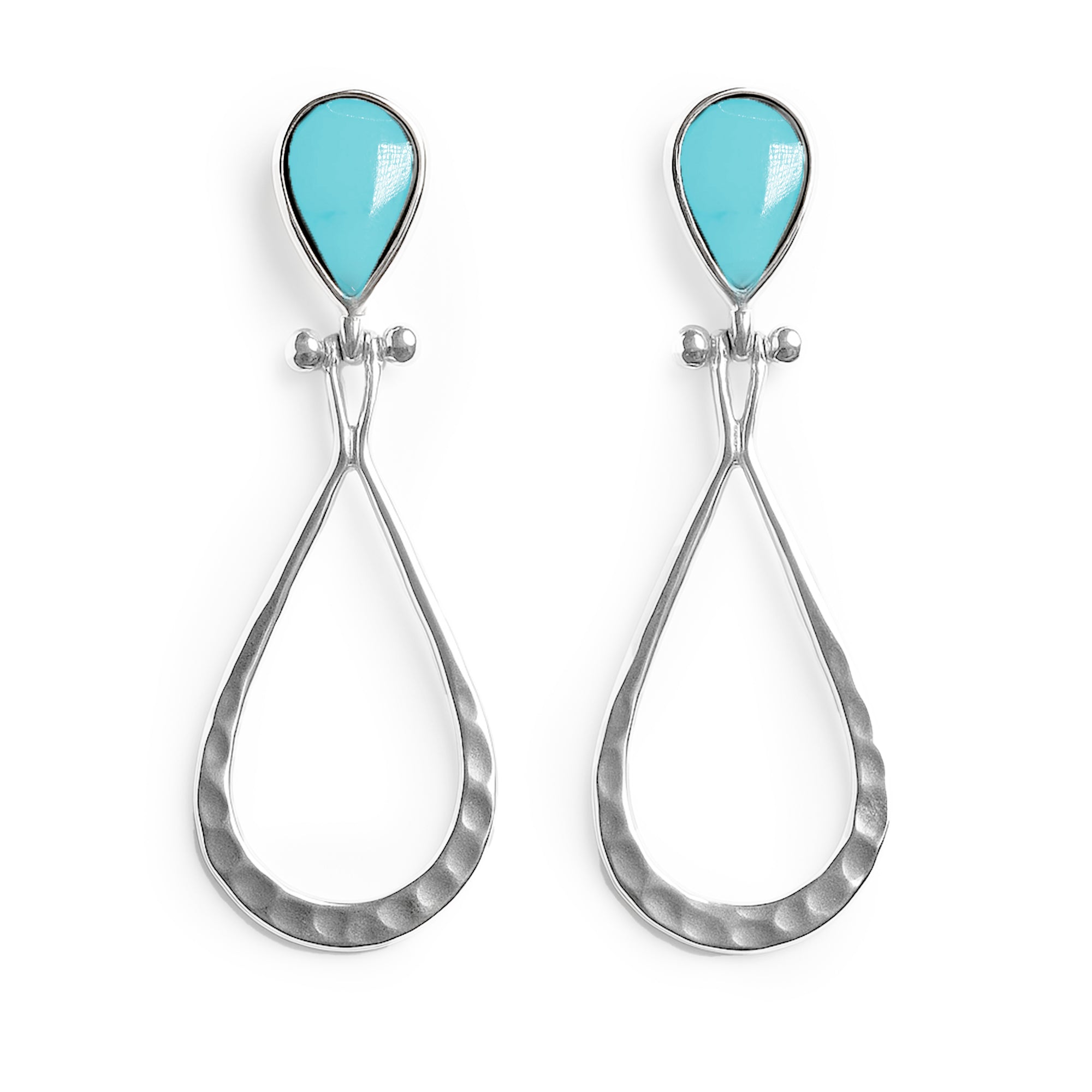 Arete Largo Estilo Gota con Piedras Naturales Plata .925, disponibles en diferentes colores