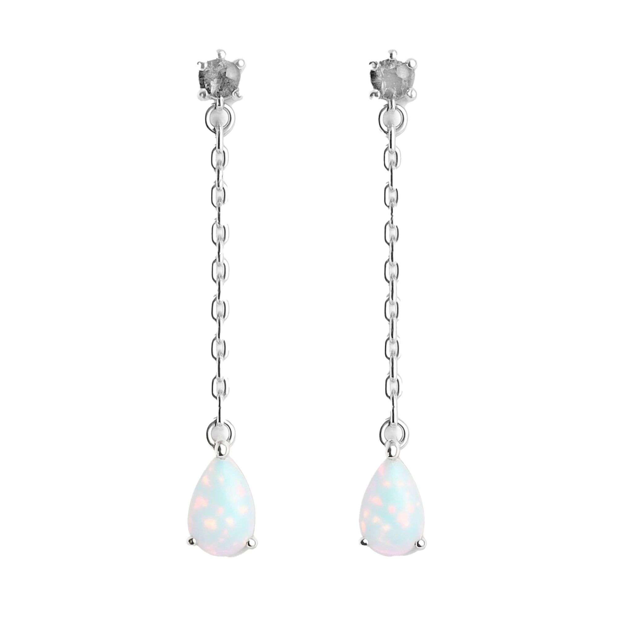 Arete Largo con Piedra Opalo y Circonia Plata .925. Medida: 4 cmDescargar Imagen