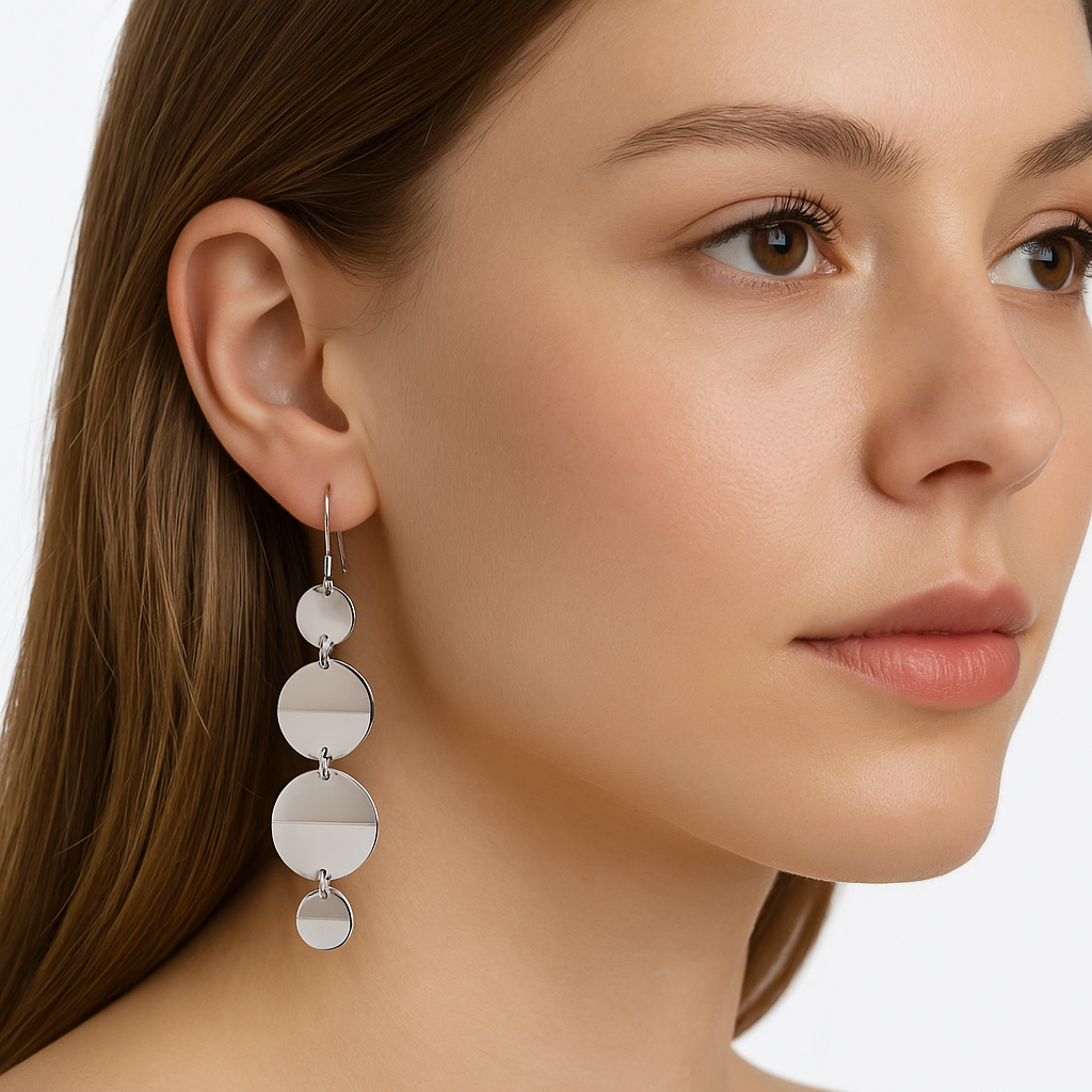 Arete Largo Circulos Lisos Hecho a Mano Plata .925. Medida: 5.6 cm