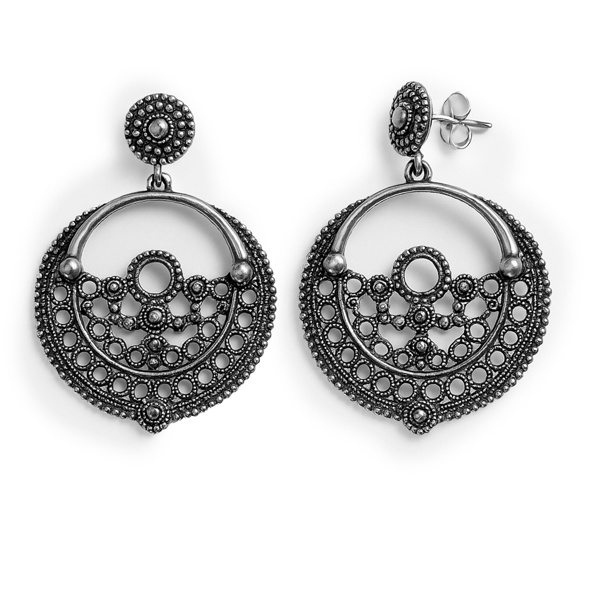 Arete Estilo Filigrana Terminado Oxidado Hecho a Mano Plata .925, Tamaño 3.5 cmDescargar Imagen