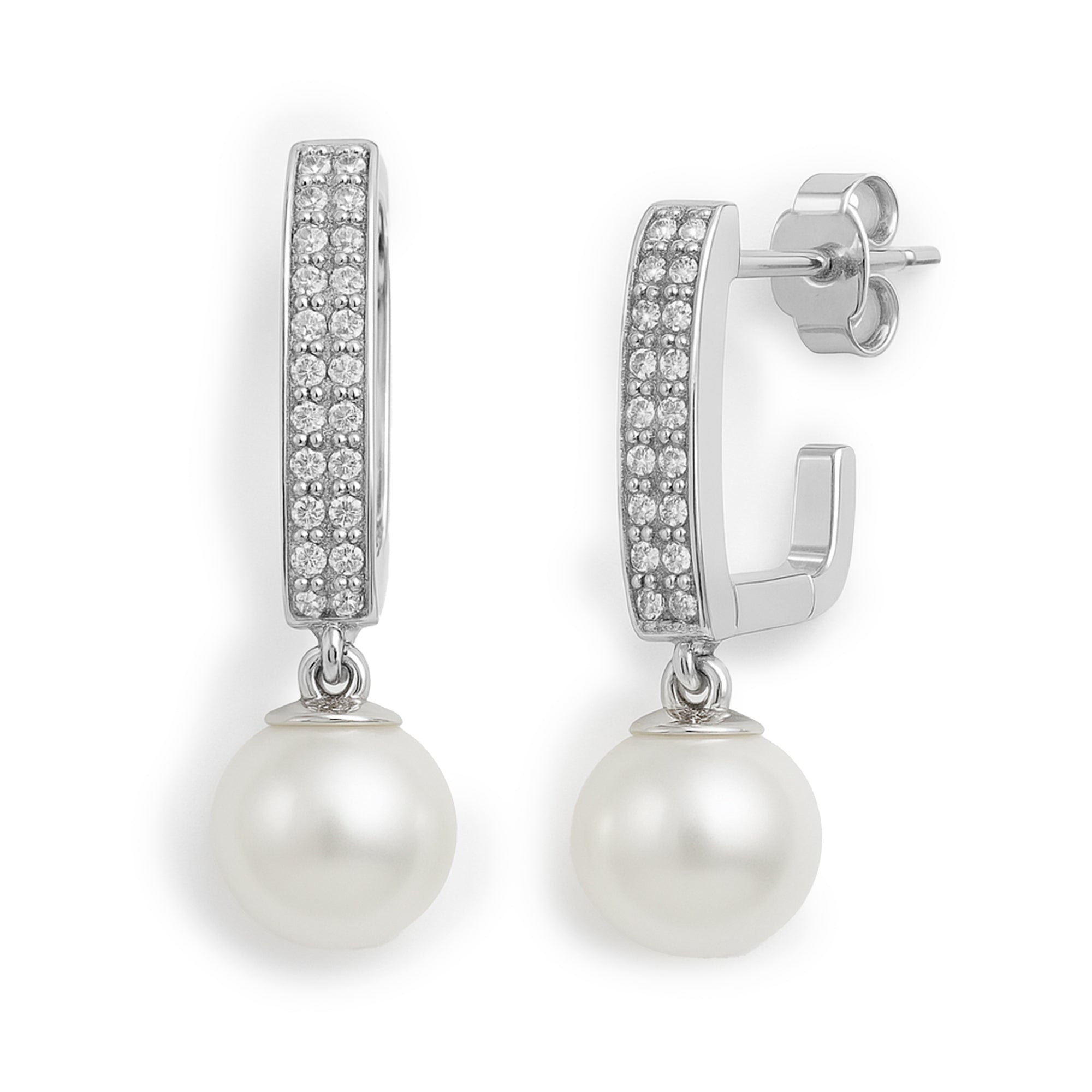 Arracada con Micro Circonias y Perla Natural Plata .925 con Rodio