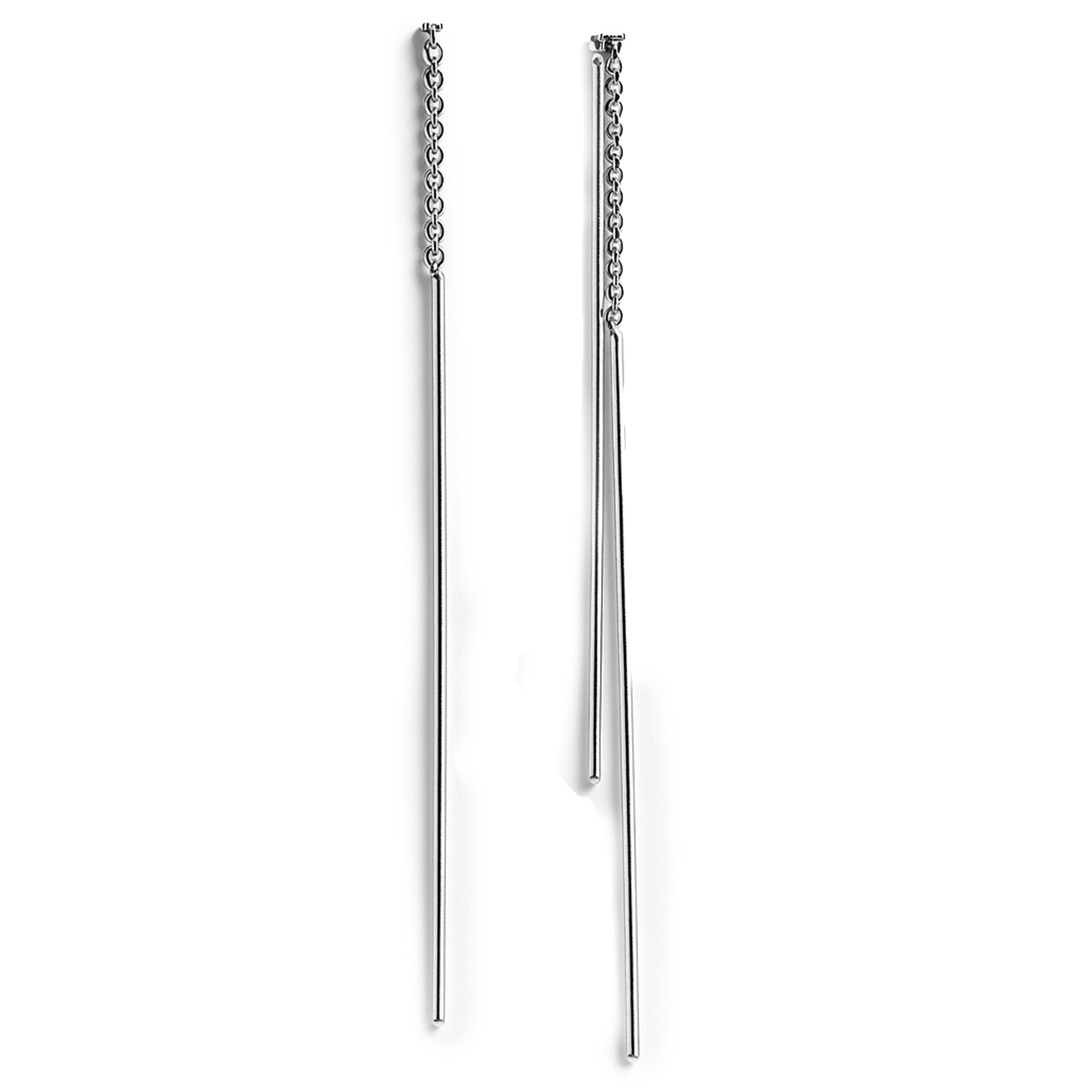 Arete Largo Estilo Violador con Tubitos Lisos Hecho a Mano Delgado Plata .925