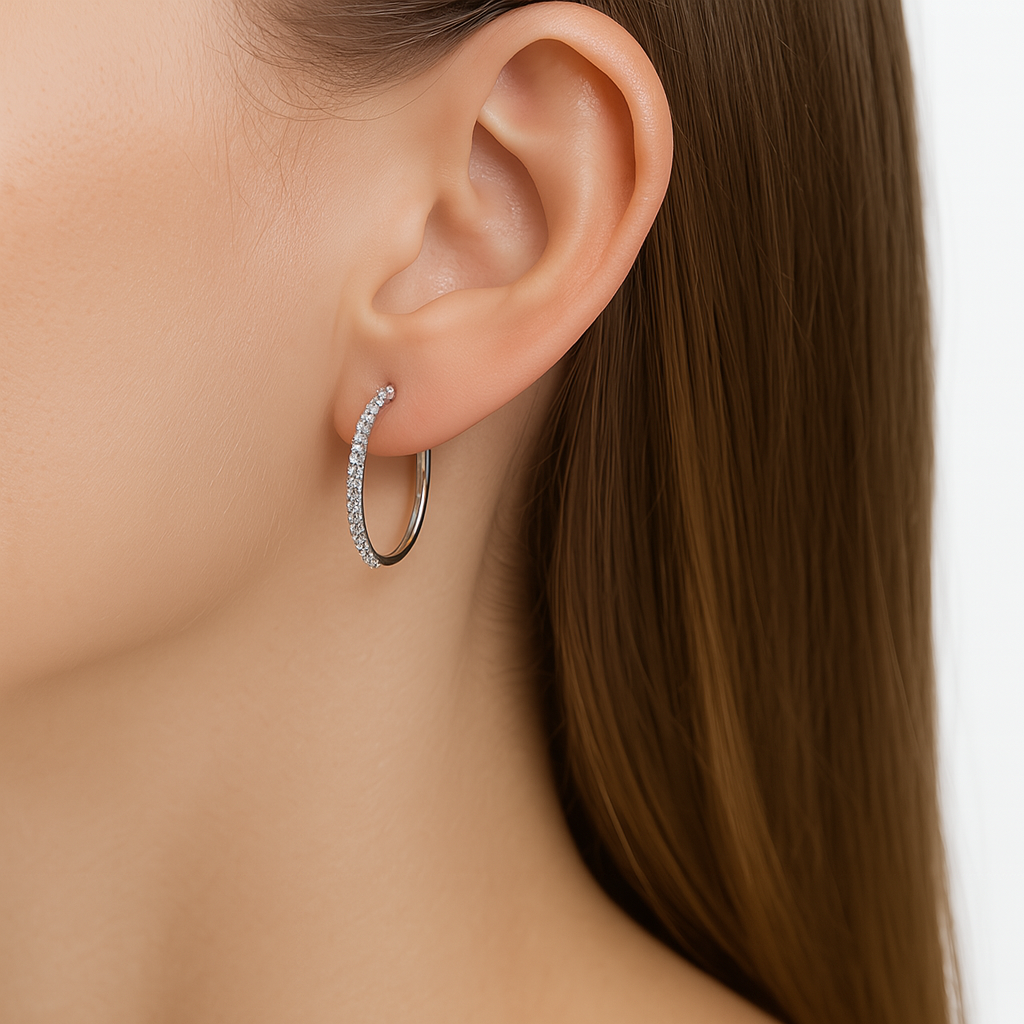Arracada Micro Circonias Plata .925 con Rodio de 3cm