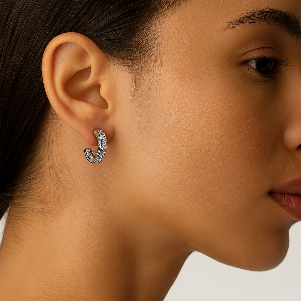Arracada Chica Inspirada Cartier de 1 cm Circonias Plata .925 con Rodio