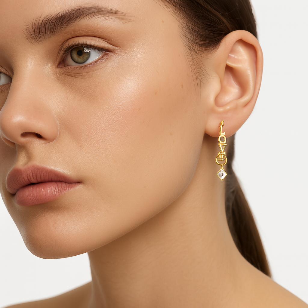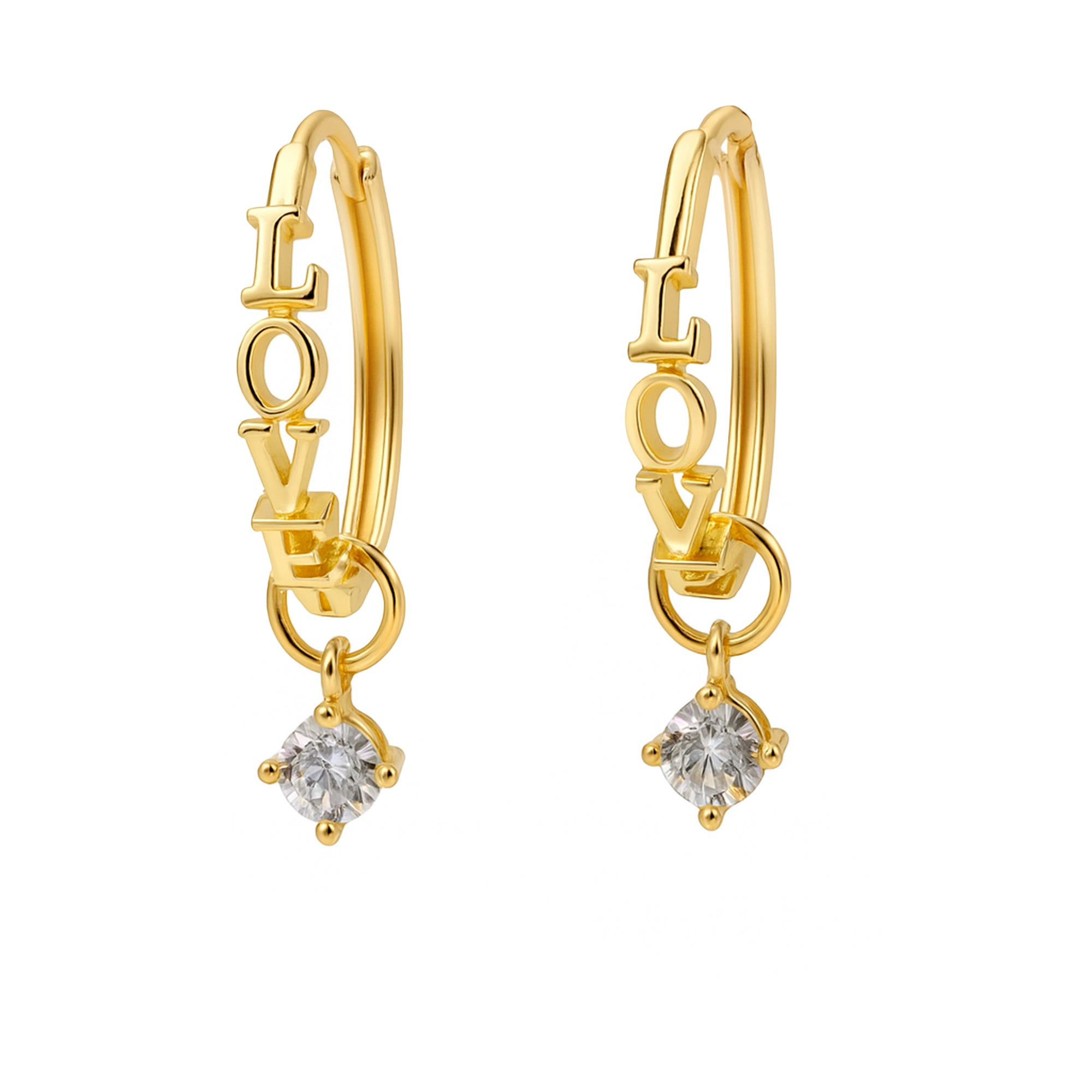 Arracada Love con Circonia Plata .925 con Baño de Oro de 2.5cm