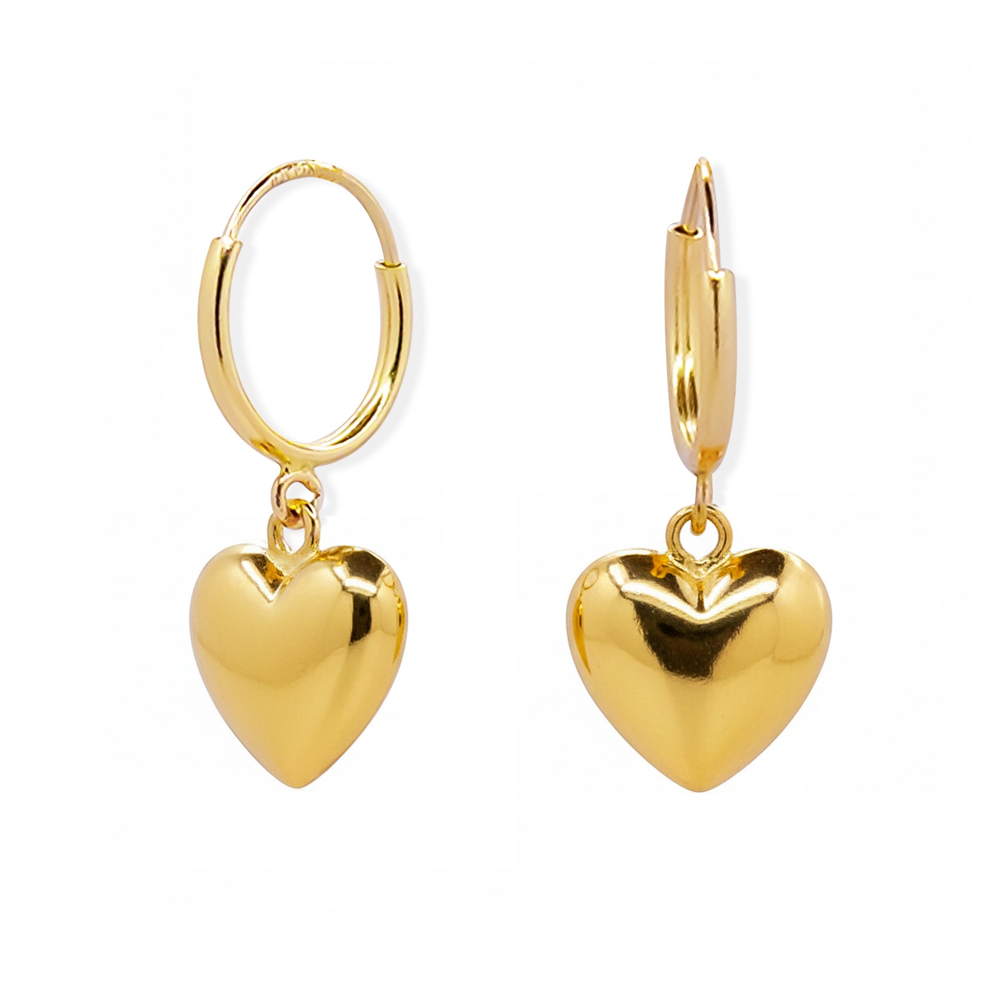 Arracada Corazón Bombeado Hueco Colgante 1.7cm Oro 10K