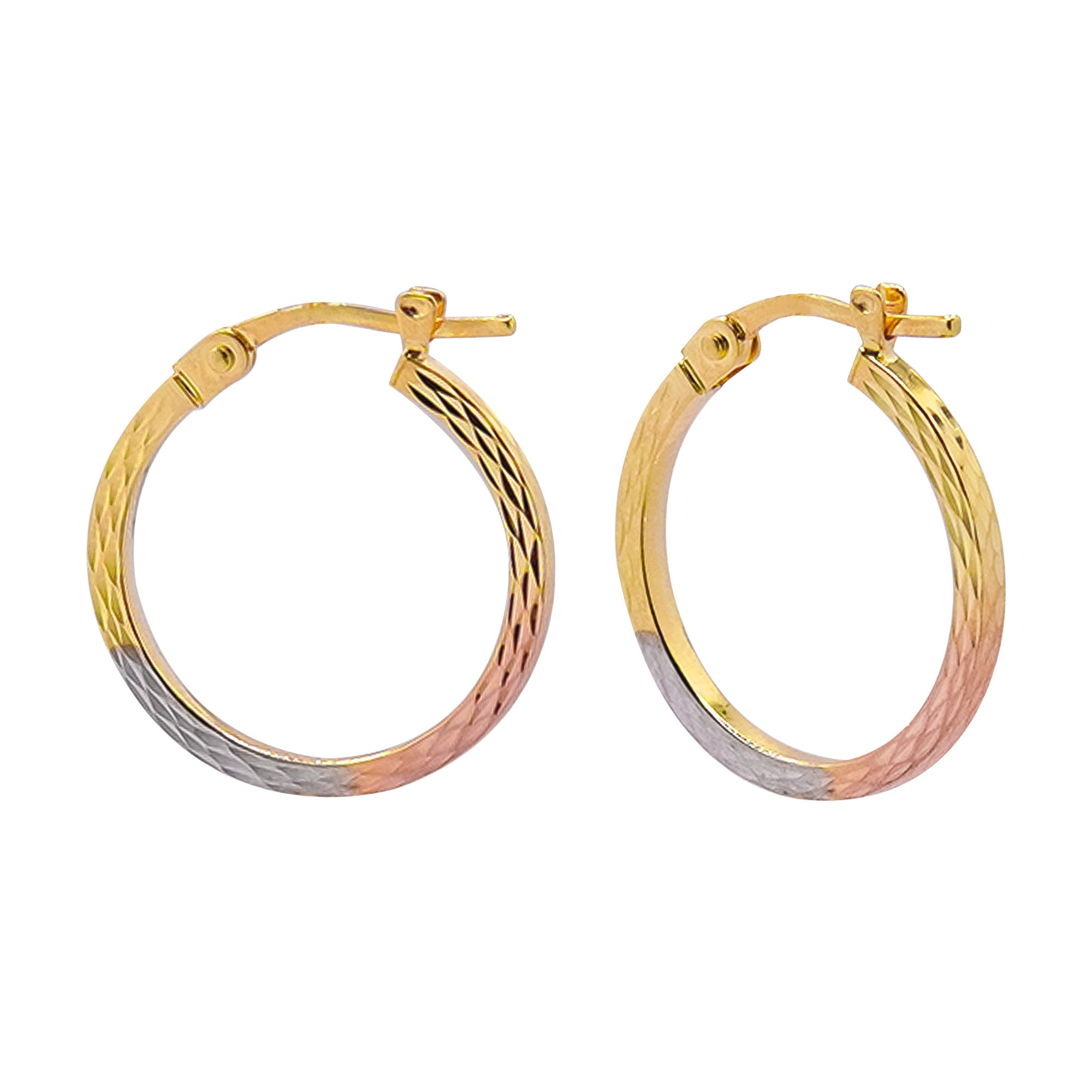 Arracada Martillada Florentina 3 Oros Dorado, Rosa, Blanco 1.9cm Oro 10K