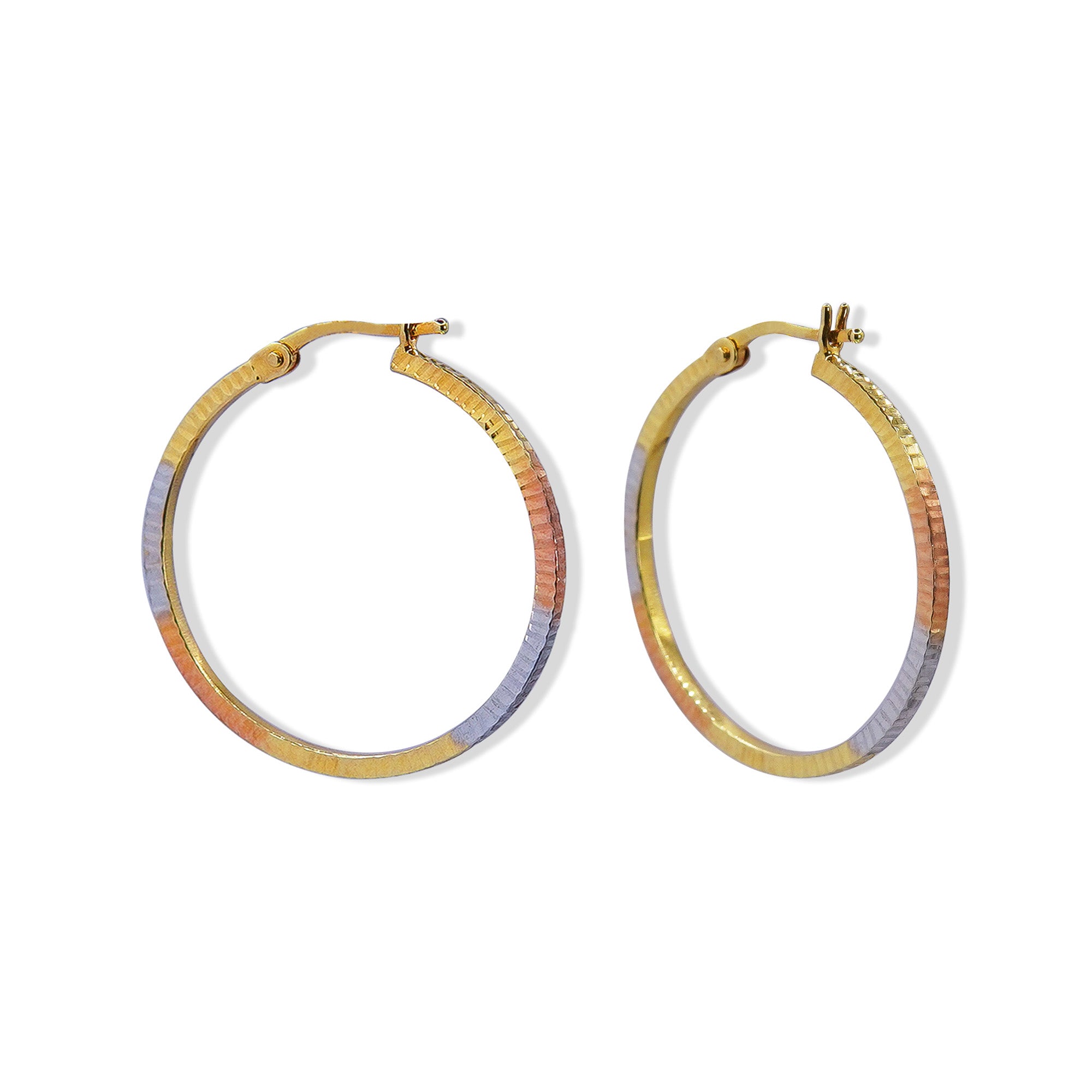 Arracada 3 Oros Rosa, Dorado, Blanco Diamantada 2cm Oro 10K