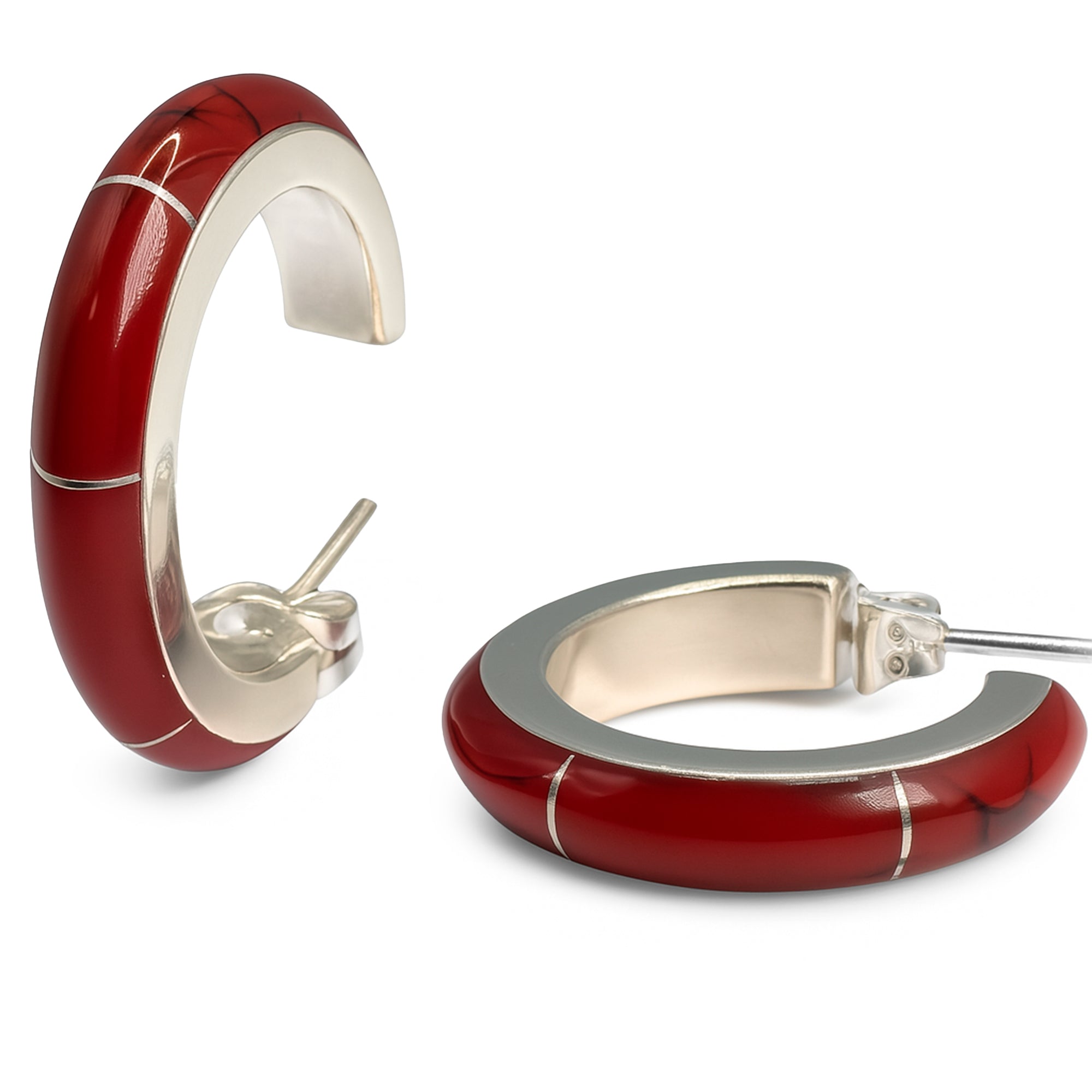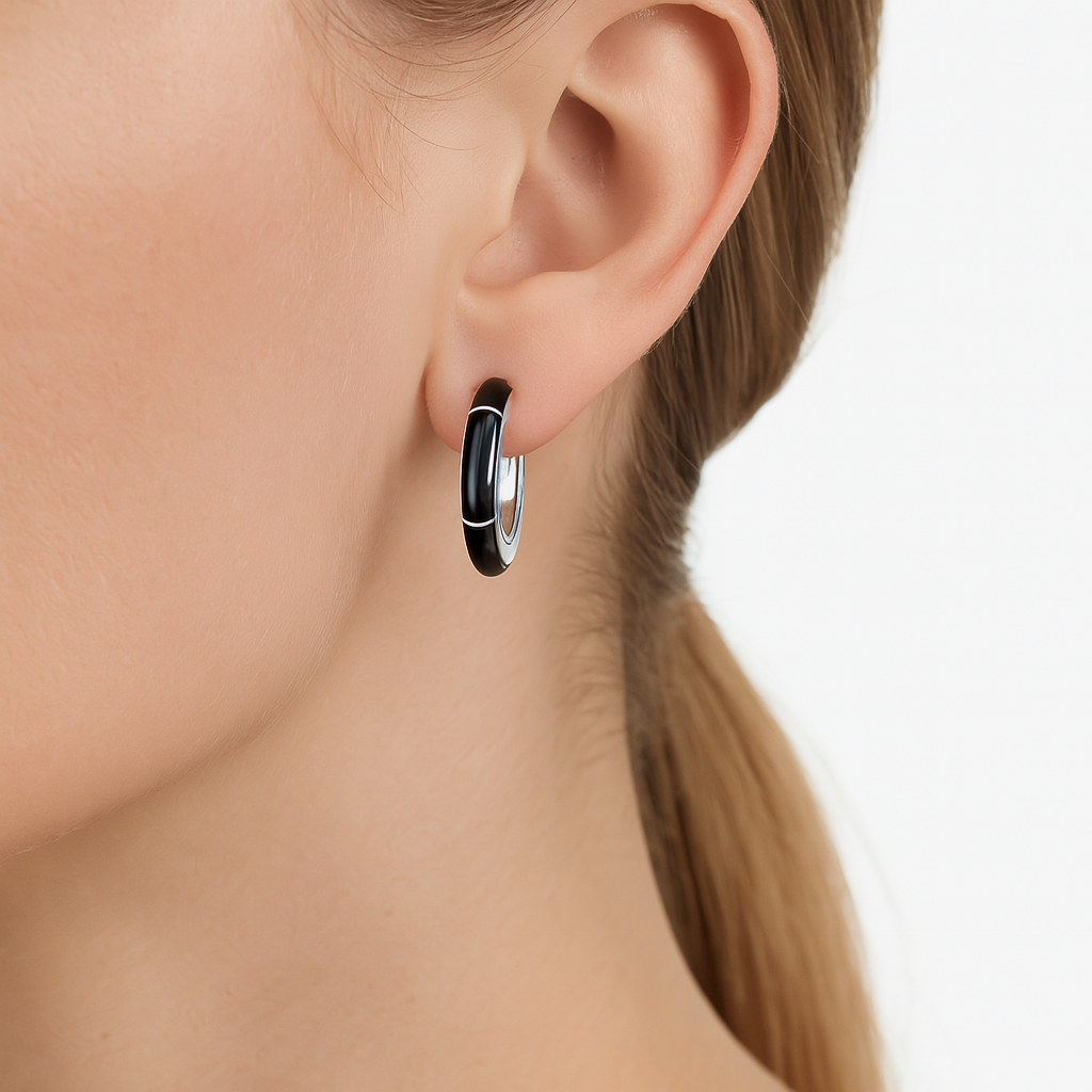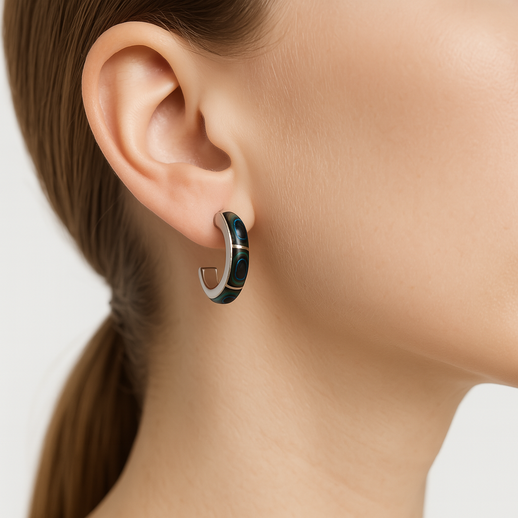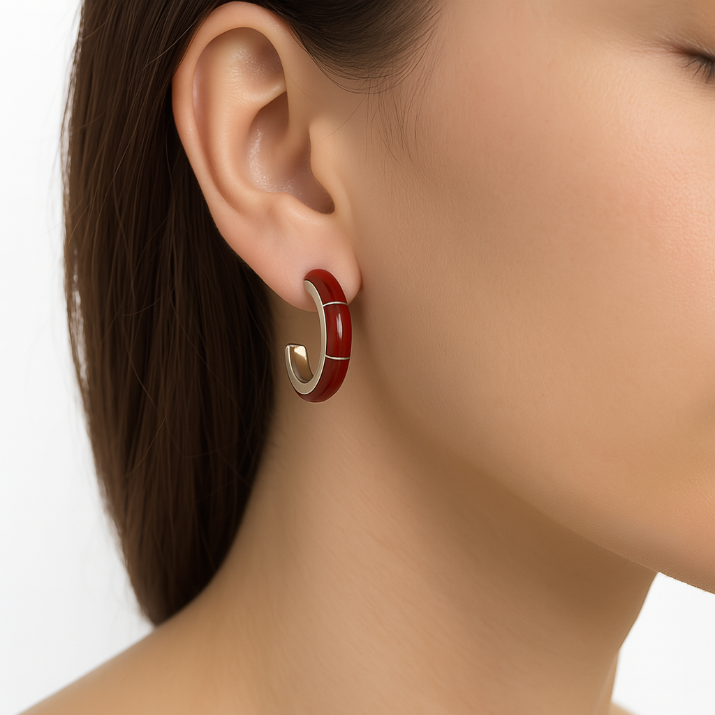 Arracada con Piedra Natural Plata .925 de 2.5cm, disponible en rojo, negro y abulón