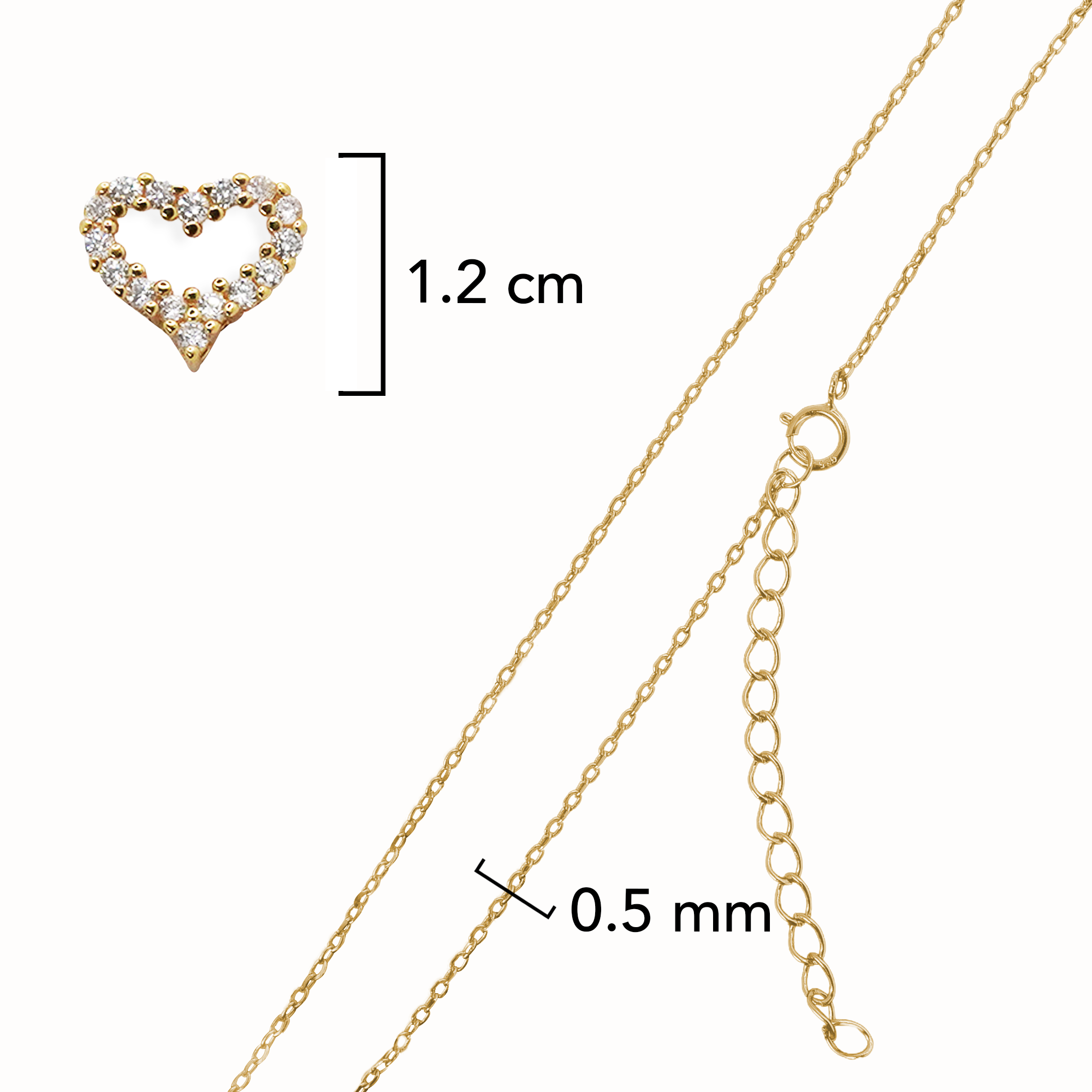 Collar Corazón con Micro Circonias Oro 10K. Largo: 38 cm